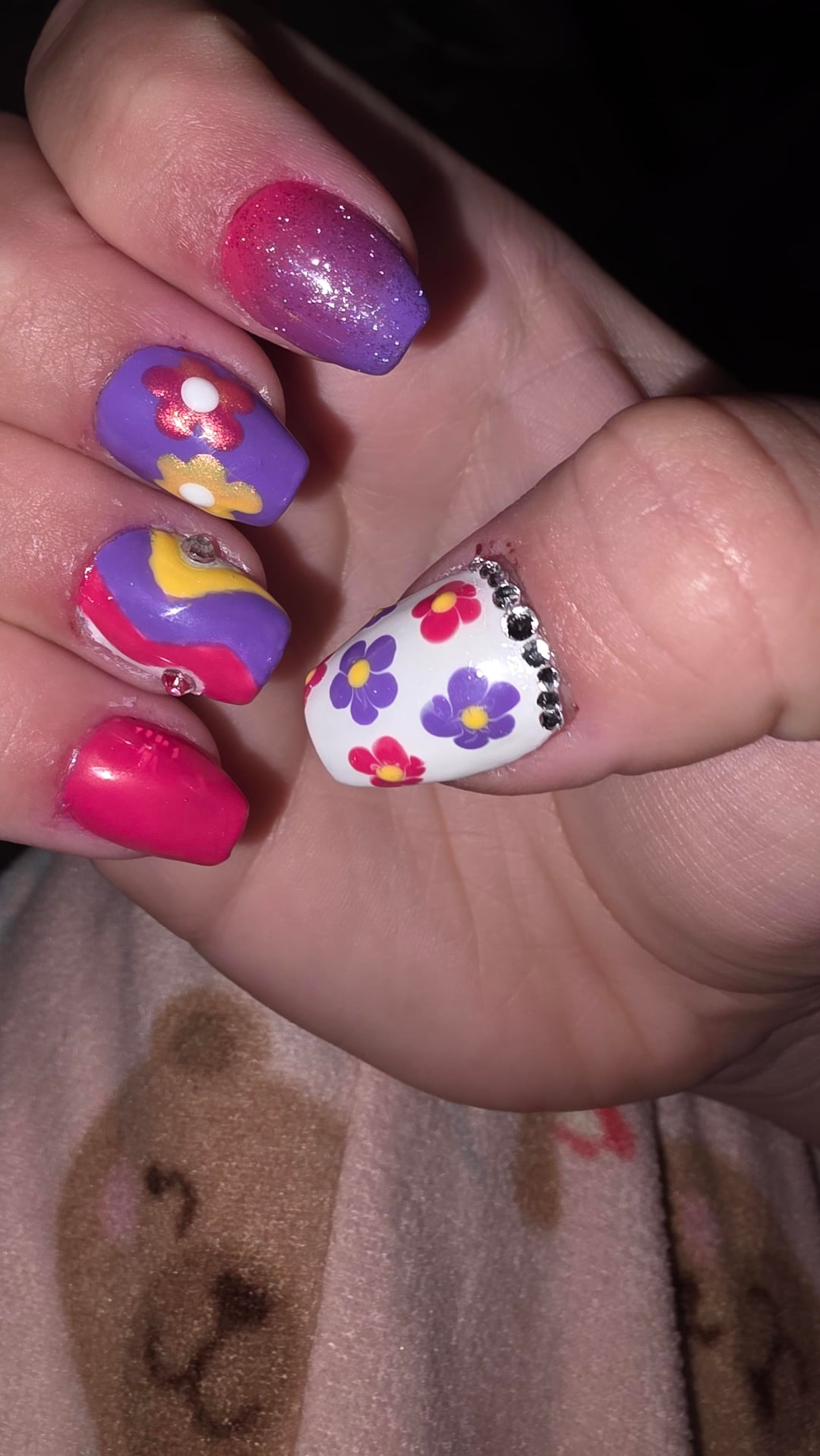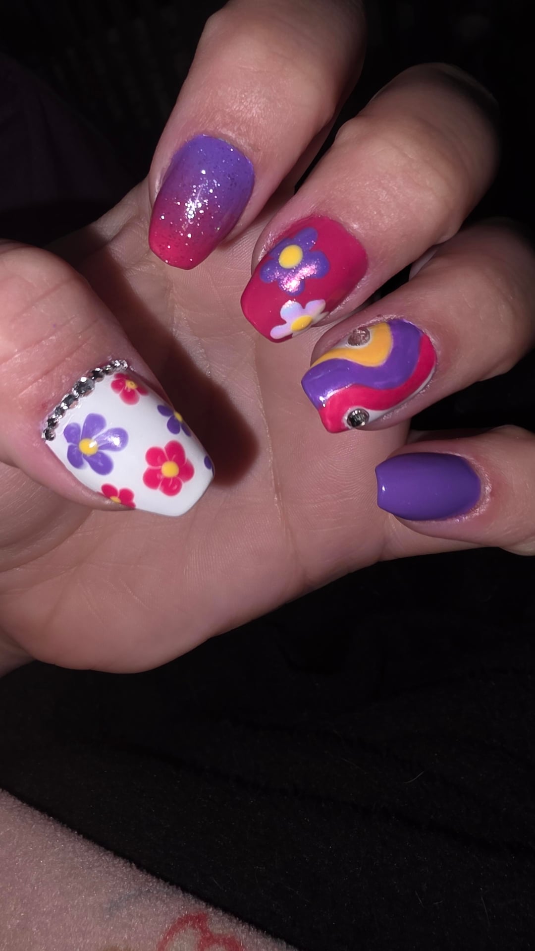this took so much longer than I thought it would. Just to prep my nails, lay the acrylic down, and file/shape them took me about 8 hours. then had to shape them again and repair a few of them and add more acrylic to some spots and smooth them out. then to paint them took forever too. Definitely chewed my cuticles up pretty badly on my right hand cause im not left handed. overall I think they look okay what do yall think? any tips for speeding the process up?