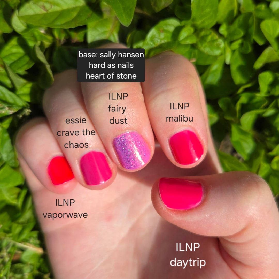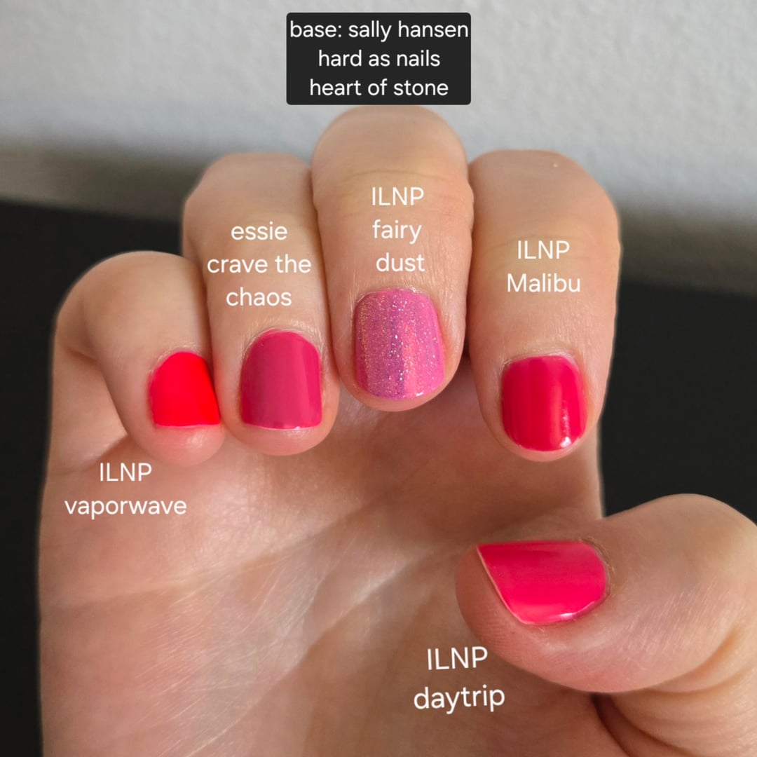 ILNP Malibu and Daytrip look similar in photos, but Malibu is much more translucent in low lighting. Vaporwave is also fairly translucent with only 2 coats.