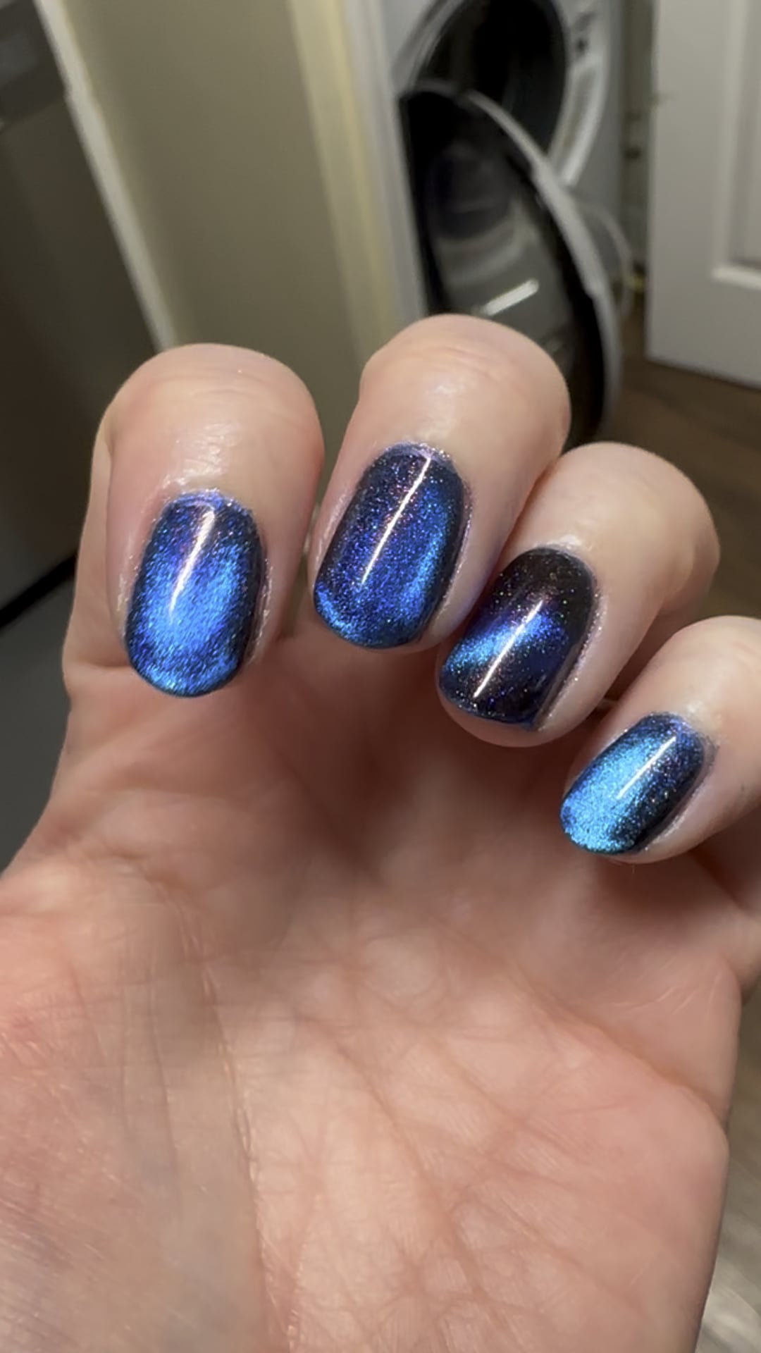 Really love this one – beautiful colors and sparkles. LynB b smooth, Opal Theory Cassiopeia A 2x, DRK magic effect, Essie GC topcoat by Sunfish73