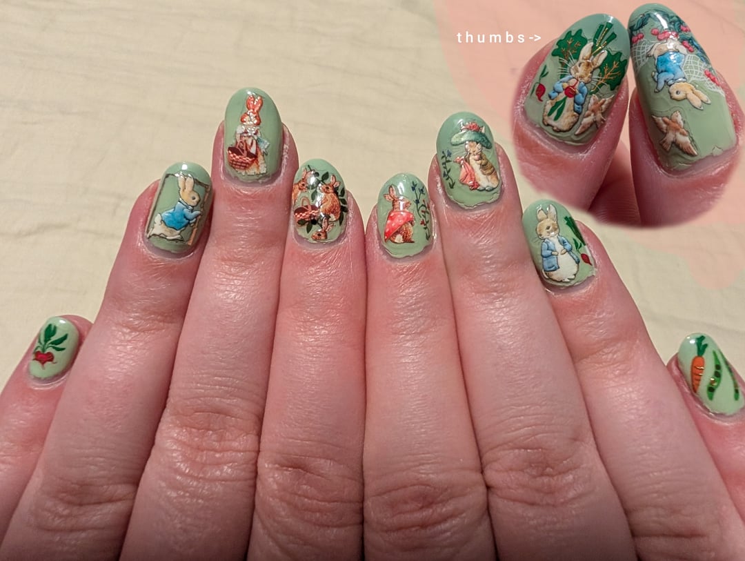 The last image is every page of the books I referenced in the set, from both The Tale of Peter Rabbit and The Tale of Benjamin Bunny by Beatrix Potter. I tried to tell the story in order as much as possible!