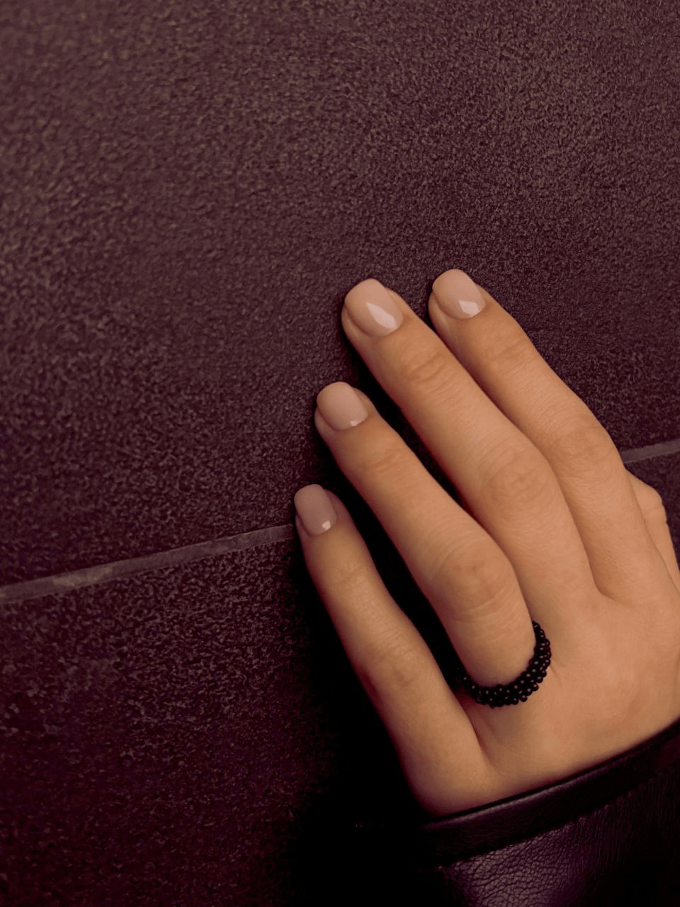 This is so clean and elegant, the nude nails with that simple ring just feel very put together.