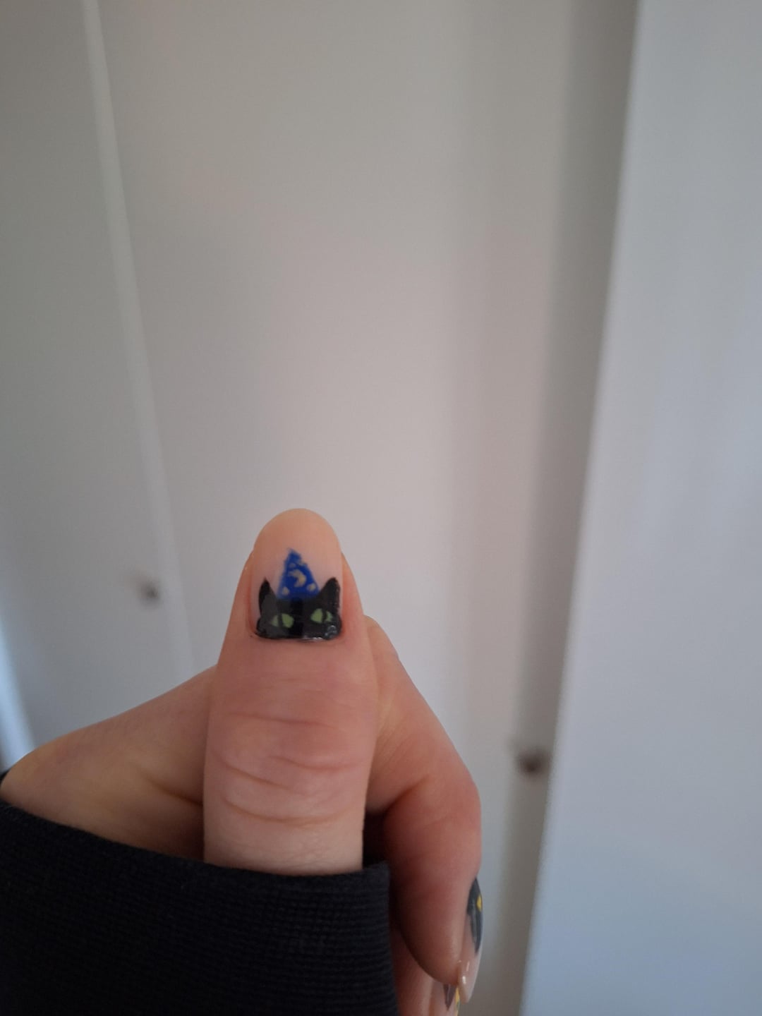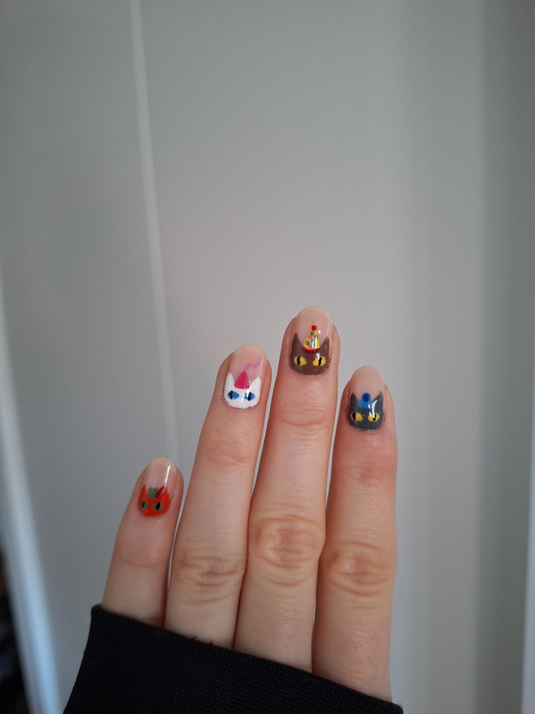 Based on thegraytergood's amazing cats in costumes design! I can't add links here, so I will link their video tutorial in a comment. This was the second time I tried nail art, and I went in with the intent of doing something more serious, but tbh silly goobers is my passion.