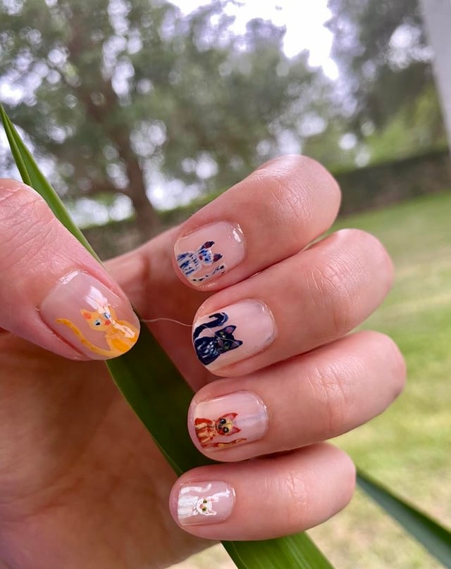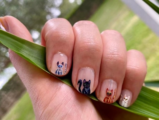 A kitty manicure wouldn’t be complete without an errant cat hair stuck in the top coat.