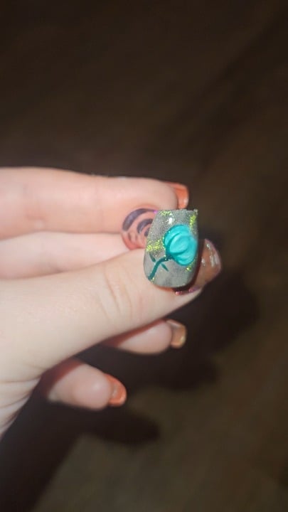 this is the first flower ive ever done. any pointers or things I should add? I just did this with gel polish and different detailing brushs. im not really liking how the stem looks. by ErodedCarrot69