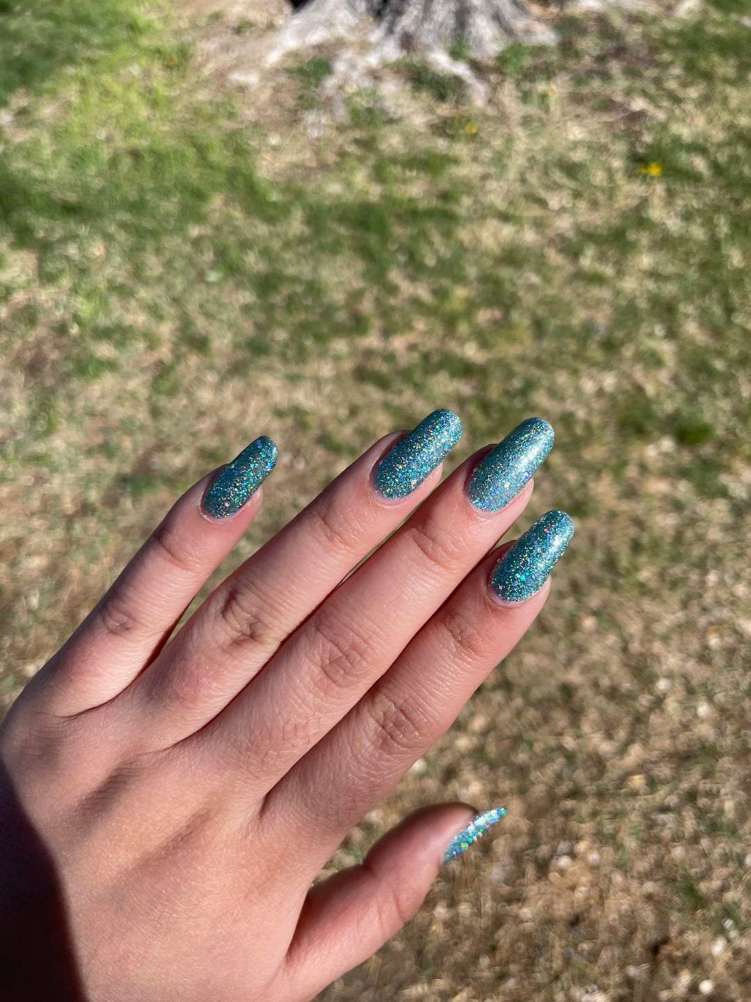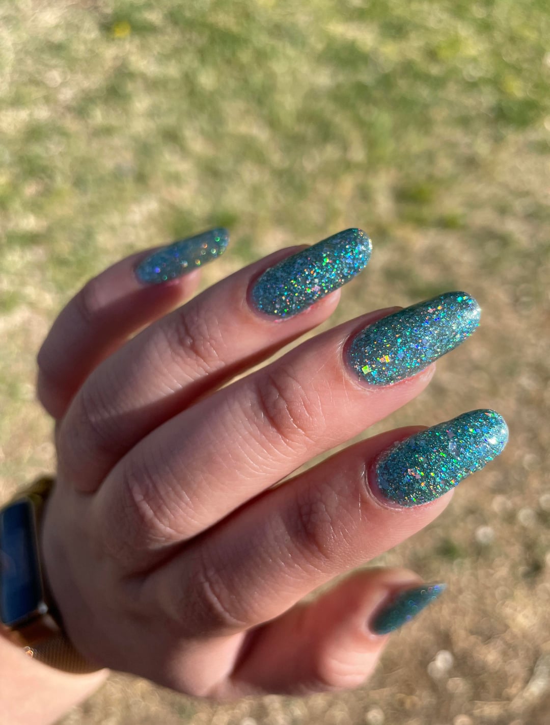 Products used: OPI nature strong base coat, Holo Taco bonus life, Essie gel couture top coat