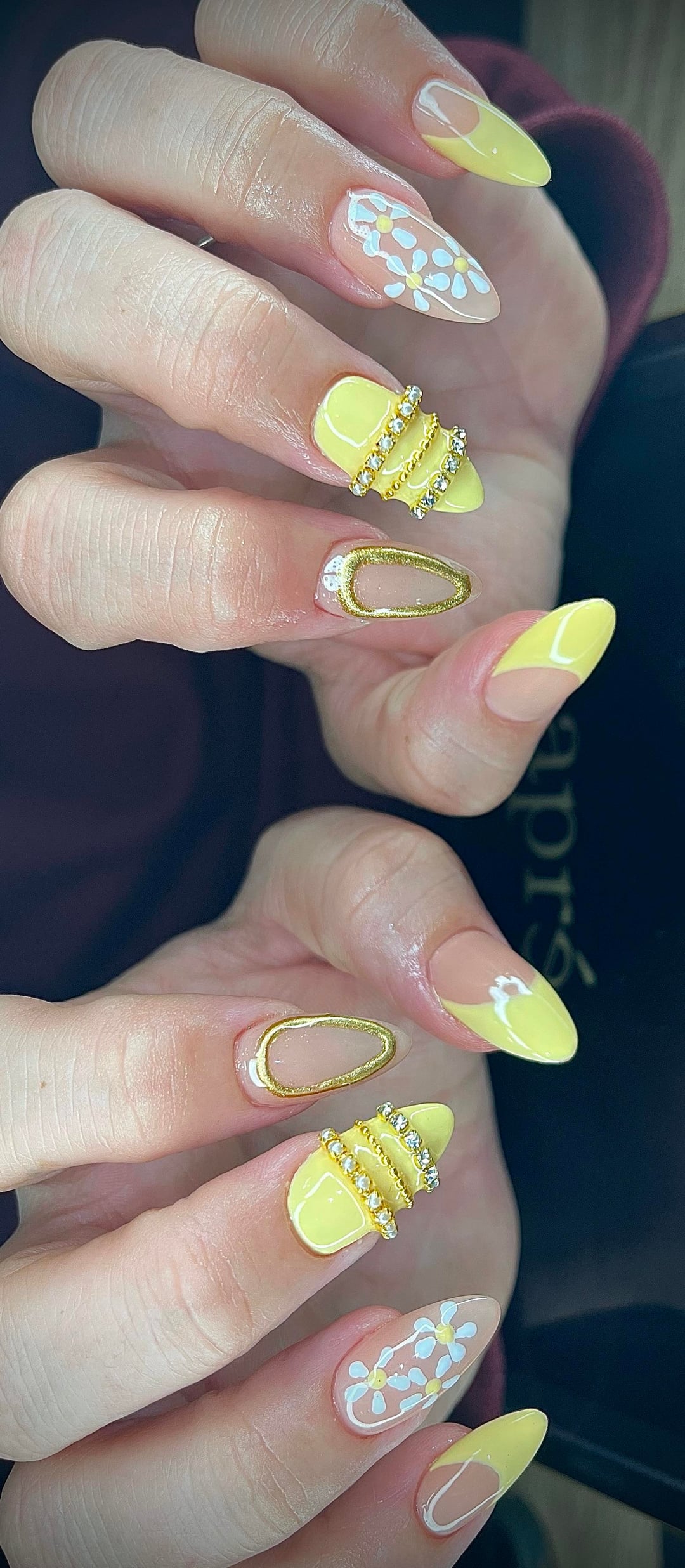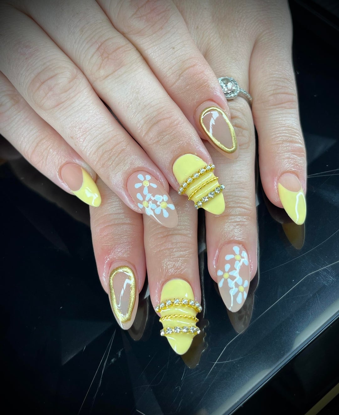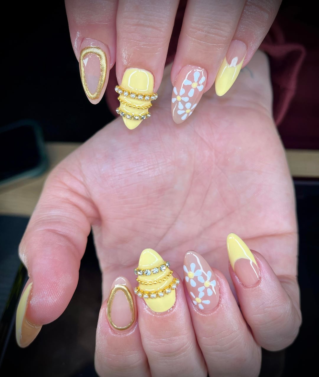 Excuse the cuticle oil flooding we were ready to be done😅(it was 3am😂) Aprés – Medium Sculpted Almond Tencoco – #013 (Butter Yellow) Aprés – Builder Top Gelcoat by BravoAndi