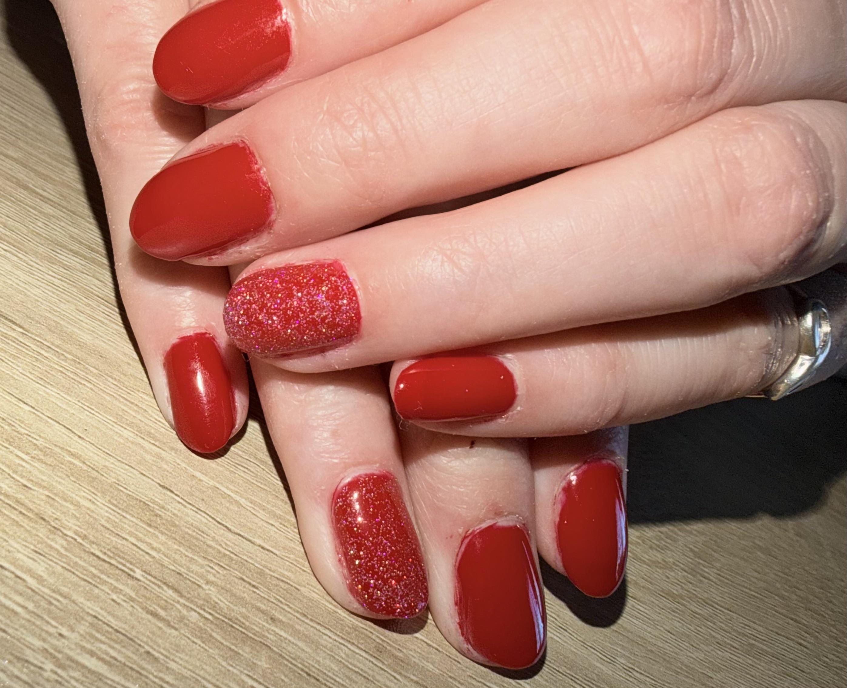 Does this look a bit too “festive” for April? (Thumb and ring finger are accented with glitter polish).
