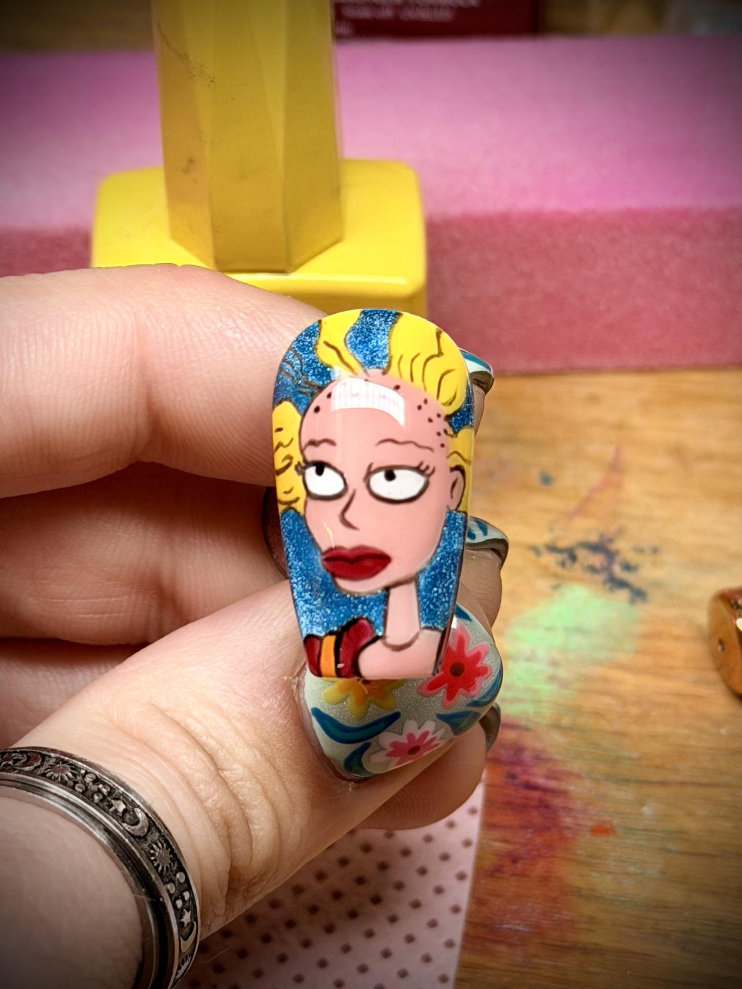 I have some nail artist friends and we do friendly nail art competitions for funzies. This week we are doing cartoon nails, and my set is going to be all Rugrats characters. Here’s the first nail from my set! by angelswon