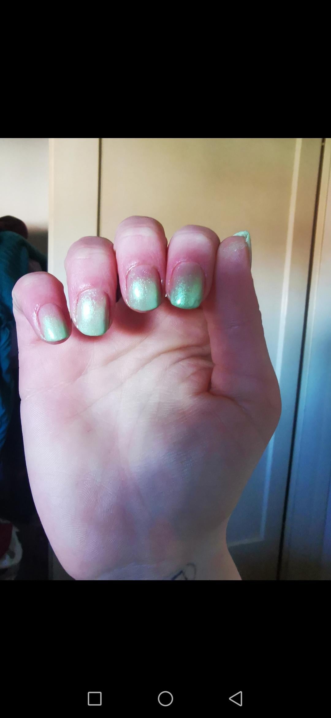 This is my first post here, mainly bc my camera can't capture a decent photo. That's why I ended up posting 6 photos of the same thing… Anyway, I'm really happy with my first ombre. It's subtle because I put shimmer all over it and bc of the lighter shades I used. Ombre is more pronounced irl when my hands are in motion. And I really love this spring-y sparkly green shade (call it glazed pistachio ombre š) so I had to post it. I used: catrice – sheer beauties strenghtening 060 as base, same + barry m – pistachio and cut out makeup sponge for ombre in two layers, trend it up – I love effect (sparkly green shade), catrice ultra quick dry tc