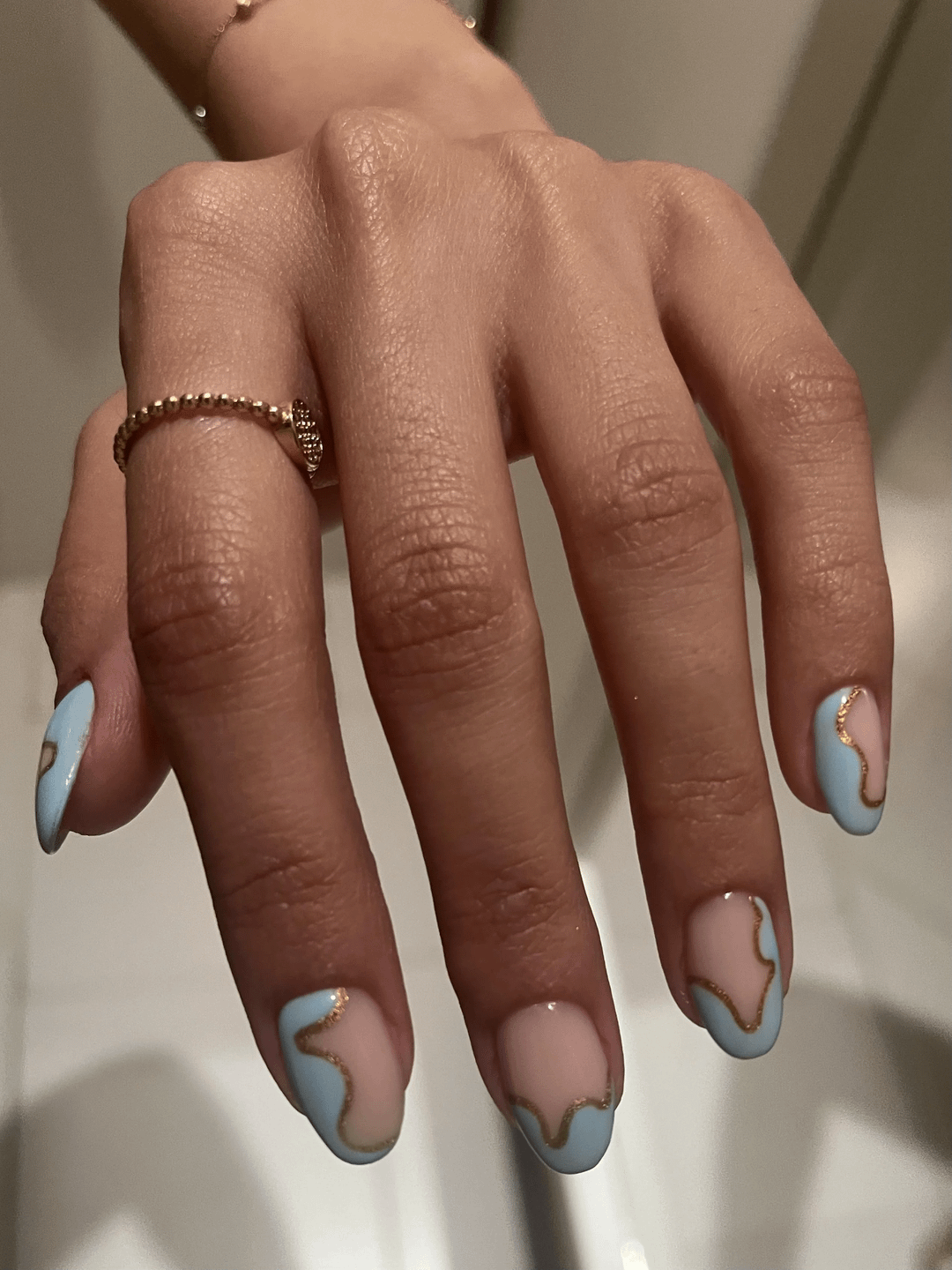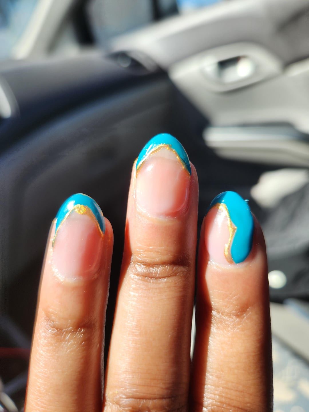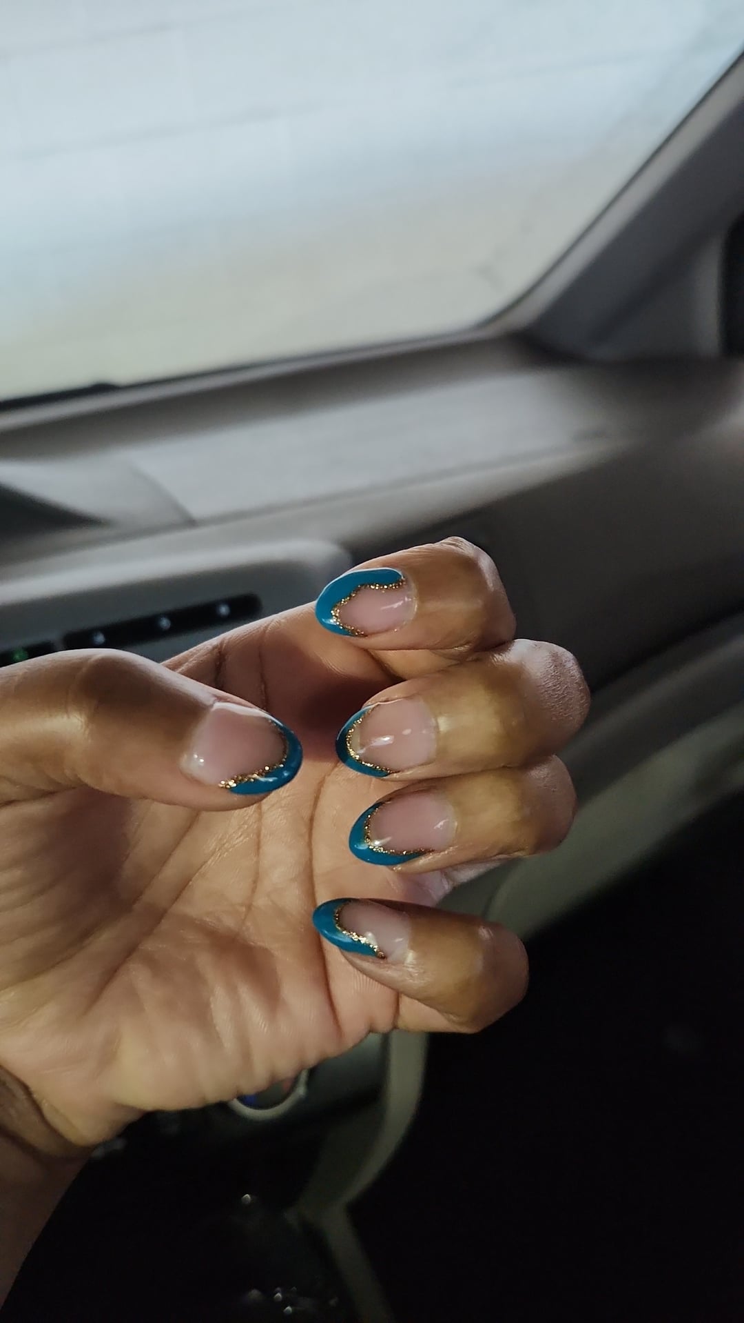 The second nail tech took off the texture and added the accent I wanted, but the main design still looks uneven and bad.