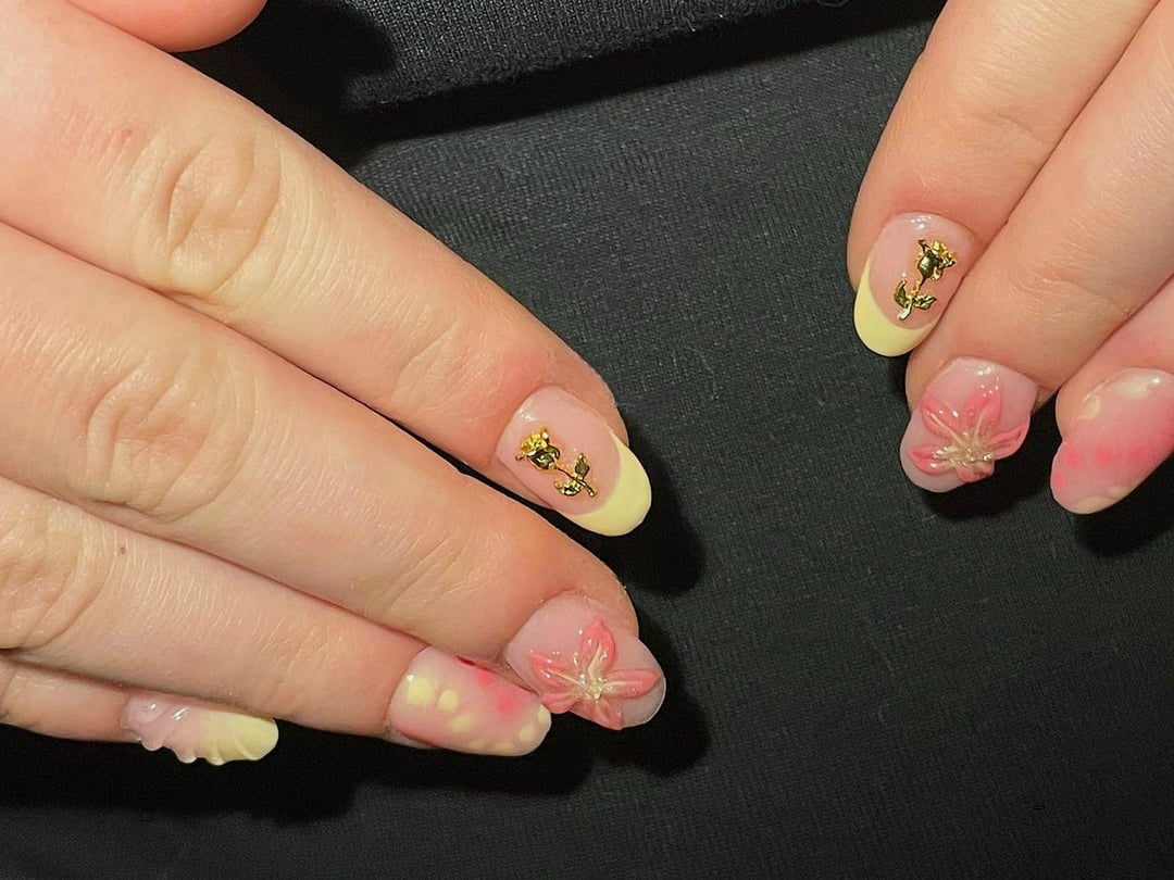 And also, tell me what you think. It was the first time I'd ever done gel nails on someone and tried 3D flowers, so it's not quite there yet…