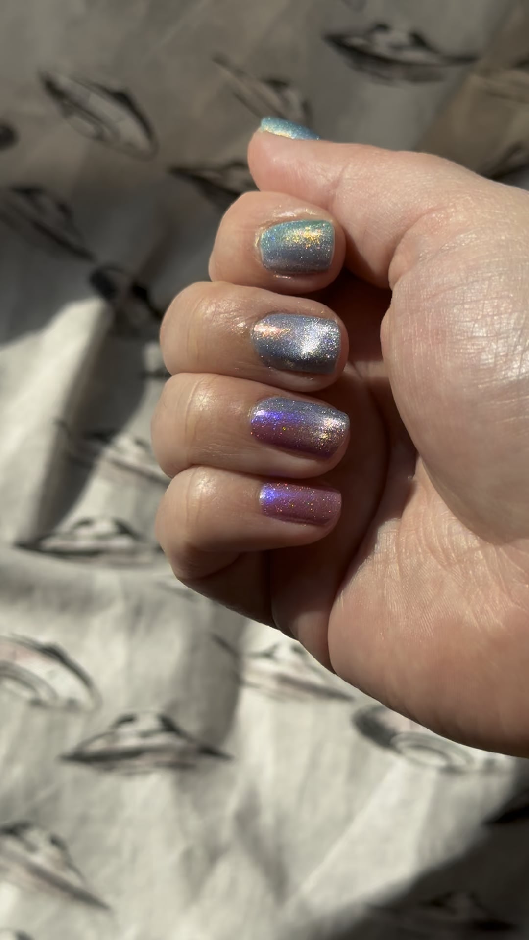 Index and ring fingers are vertical split with their neighbors, all magnetized with the 5D spinner. No topcoat yet.