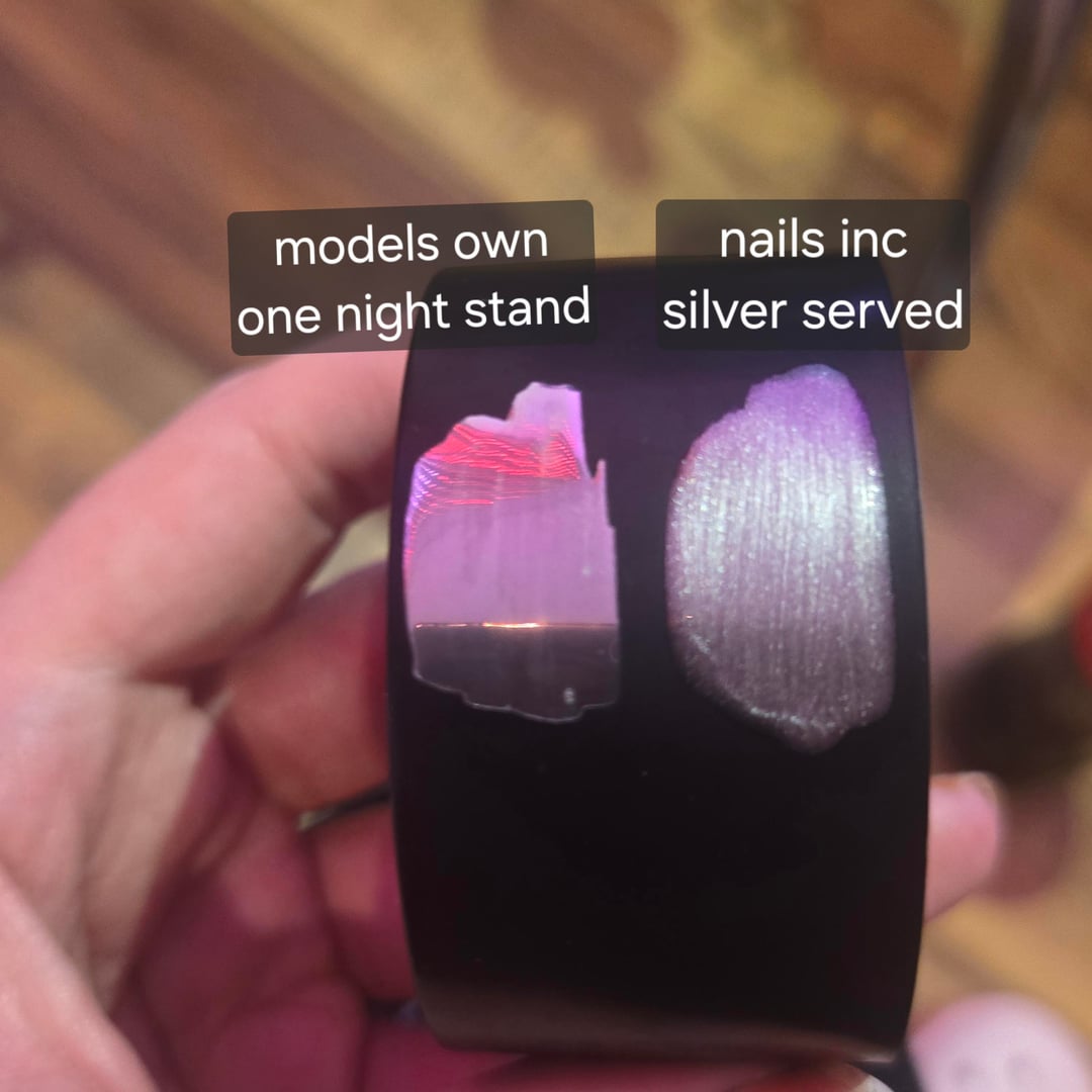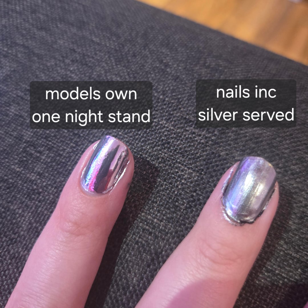 Right – one coat w7 polish in black, 2 coats nails inc mirror chrome in shade silver served