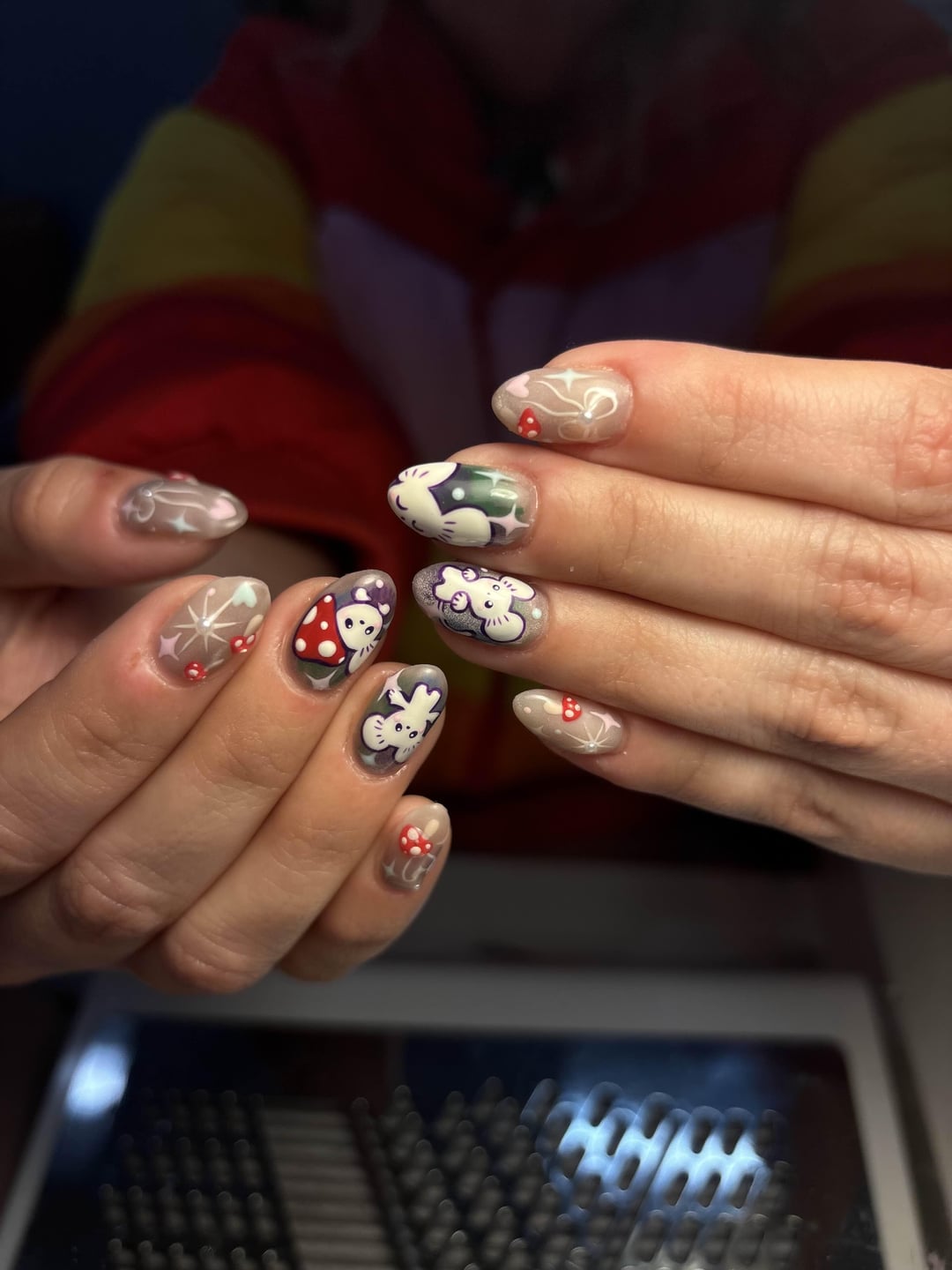 These are some designs she’s done for me. I wish I was this talented but I love her work. She’s such an amazing person. She’s also really helped me stop biting my cuticles (an autistic habit of mine since I was a kid). 😭❤️