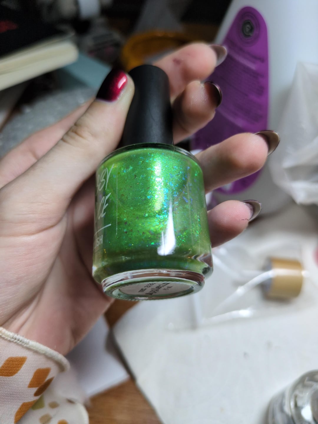 They must’ve layered it over a green polish which is so shady.