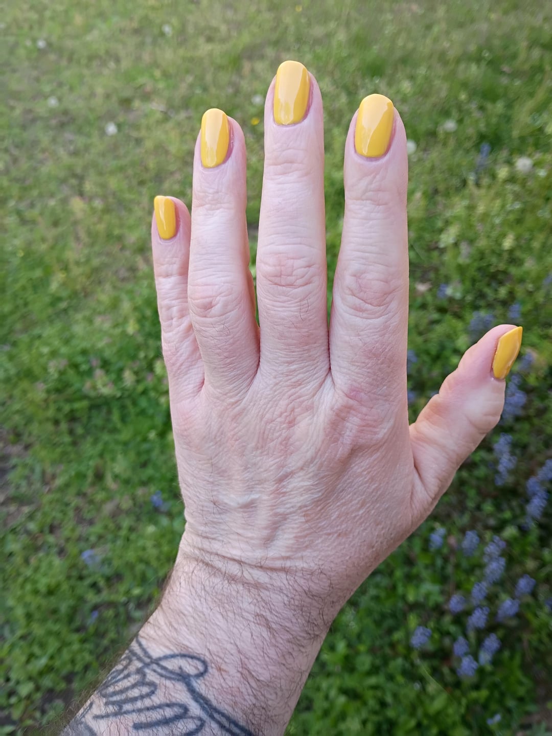 Three coats of Sally Hansen “Mellow Yellow” + my usual top coat, giving solid spring vibes by GussieDoesNails