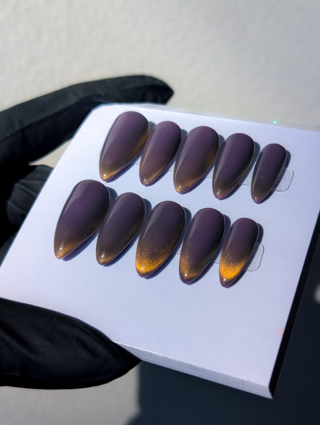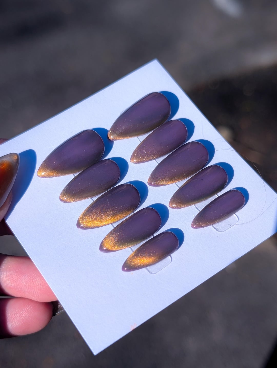 Nails by me, using DND Detective Mauve & Ambient Glow by Esvy nails on Apres short stiletto. Thanks for lookin! by uncomfortablepeach