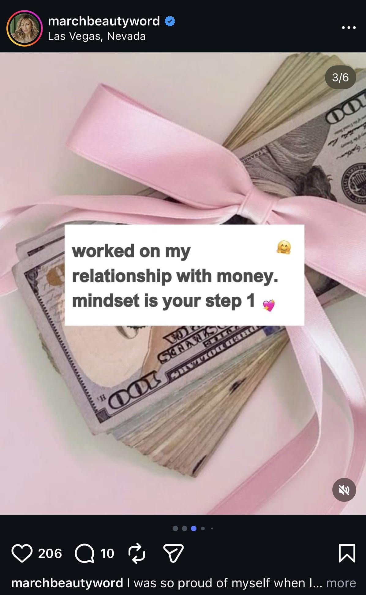 I dislike when creators give this kind of law of attraction based financial advice where your "mindset" controls your finances. It implies that people's mindset is to blame for them being poor or in debt, which ignores so many structural factors that are designed to keep people in this cycle. I don't think this is what she means to communicate, but it's just frustrating that she doesn't seem to have the knowledge that is necessary to be speaking to the public on this topic.