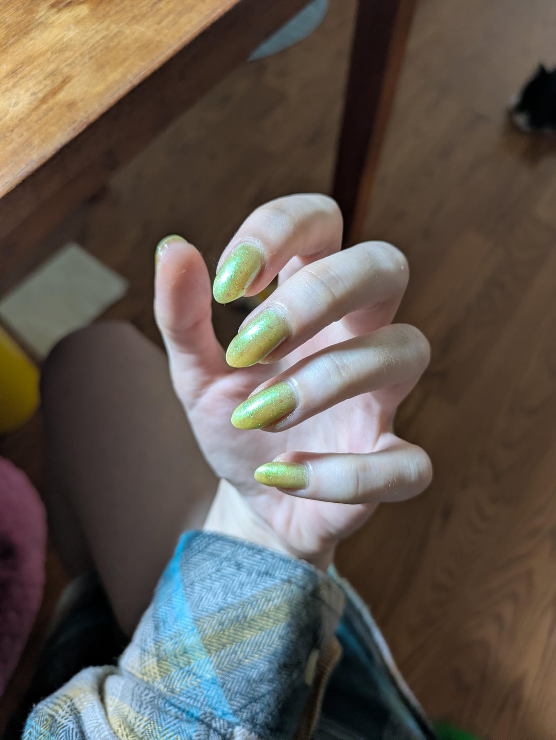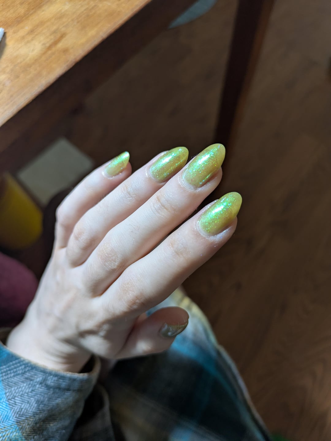 After seeing all these photos, I do think some are reflective of what you received. I do think skin tone can play a huuuge role in these light green or chartreuse shades. I don’t love the color in the first place, but if I had seen all those swatches I would have expected it to be a real chameleon shade. It does truly look like 3 or 4 different polishes depending on who is wearing it and how they are wearing it.
