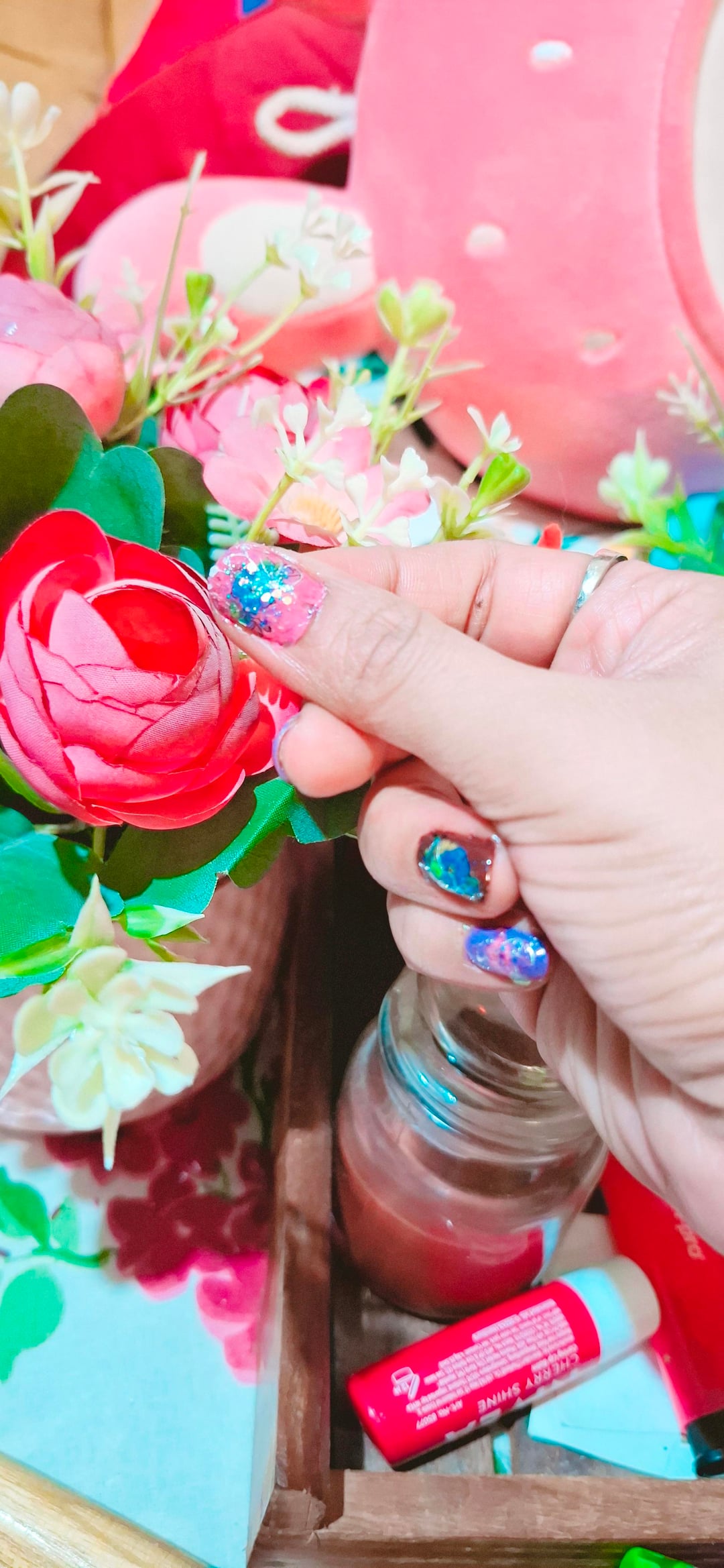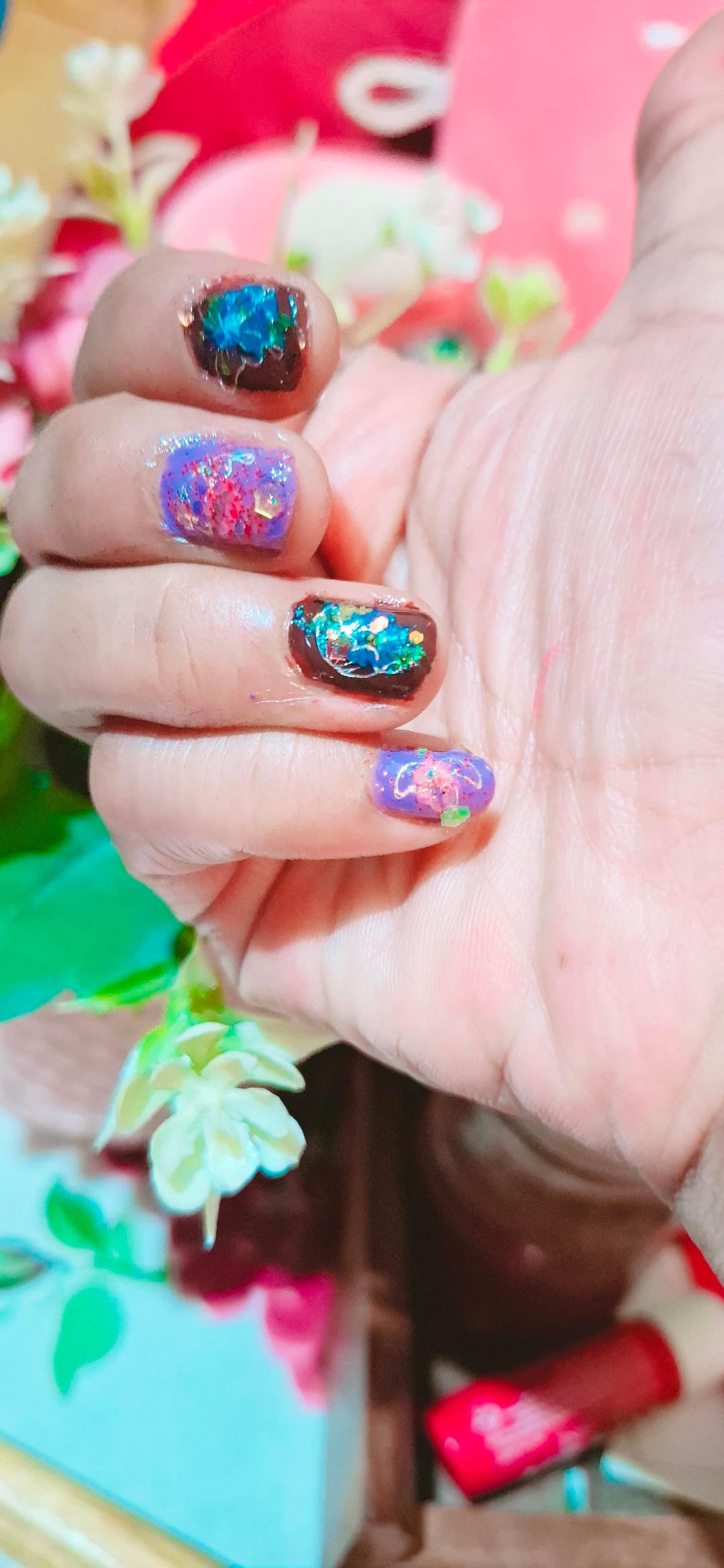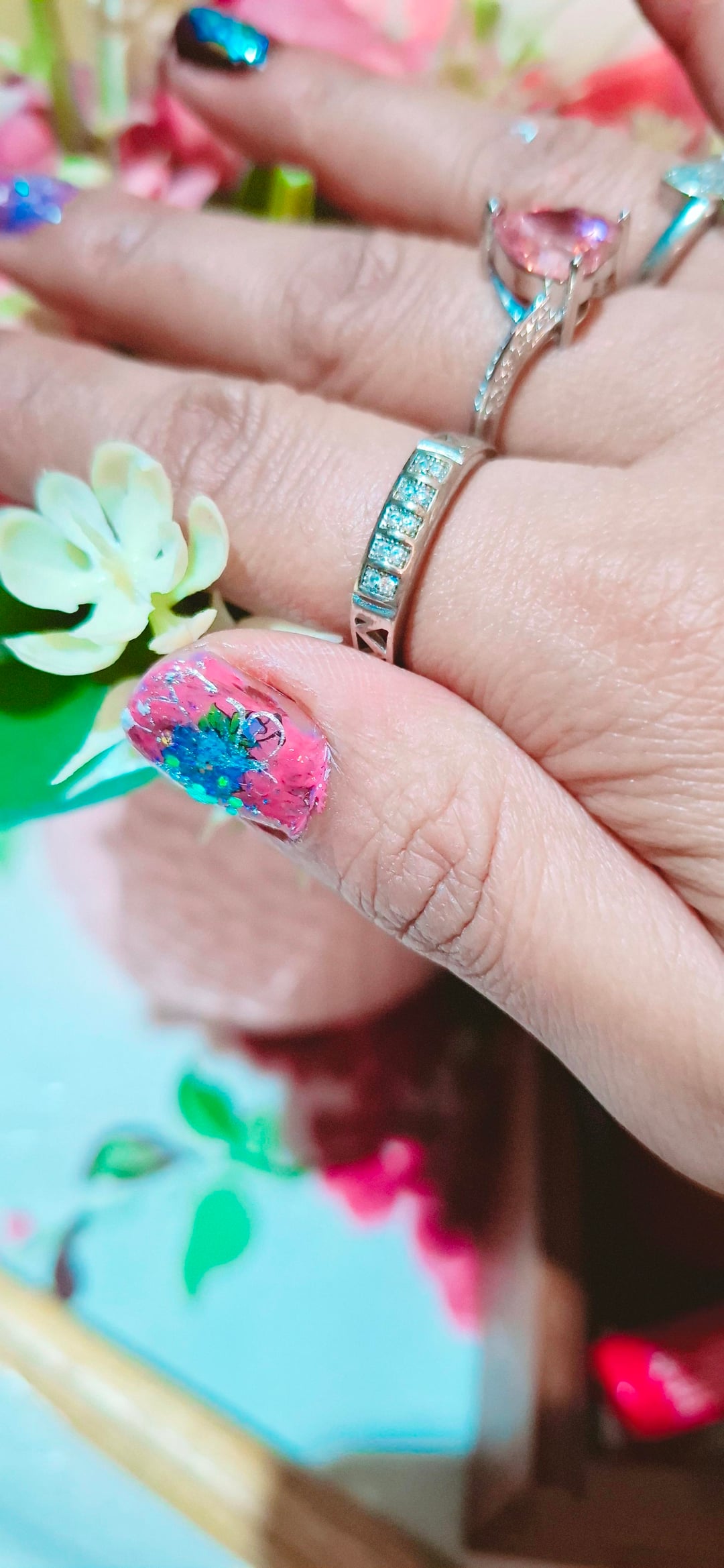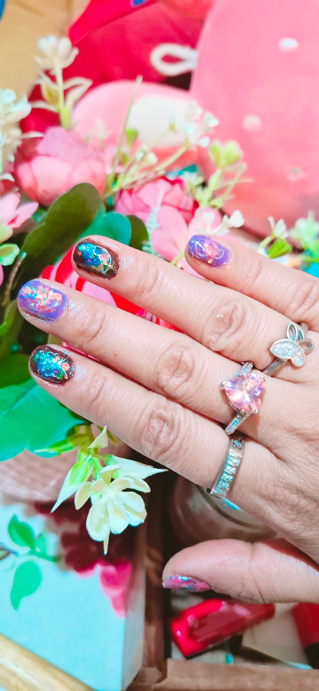 Feeling like a canvas today. 🖼️✨ It’s been a minute since I painted my nails, and now I can’t stop looking at them! Thoughts? Drop a comment below! 👇🦋"