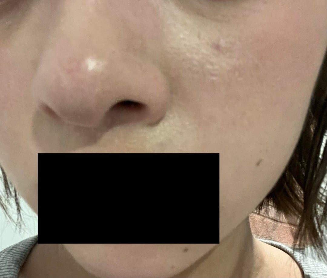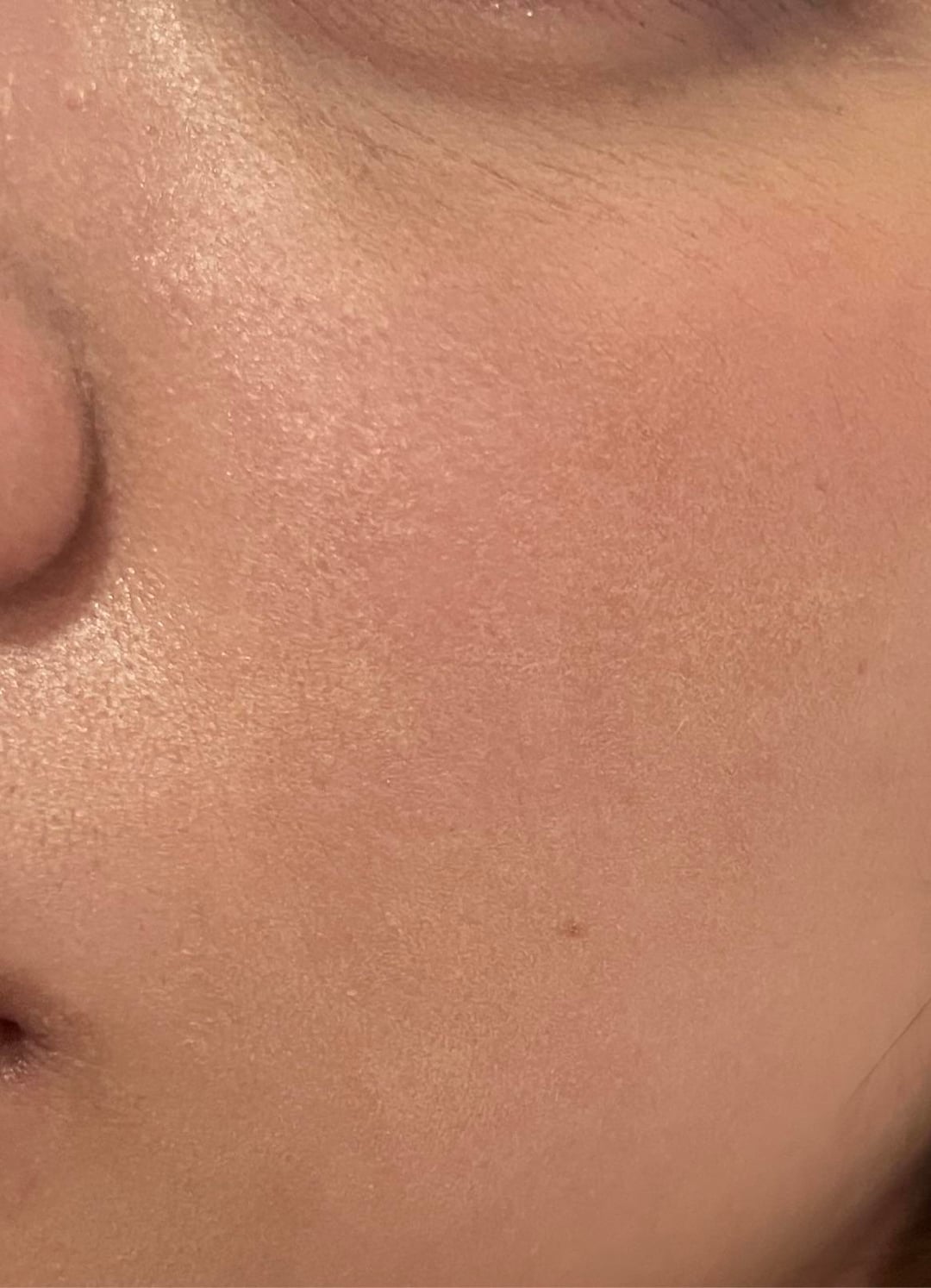 3:30pm huge timeskip!!: caking a litte bit above the lips, and on cheeks. I don’t think it’s super noticeable and it’s 7 hrs in. My friend said she couldn’t tell at first but if ur real closeup u can see it!