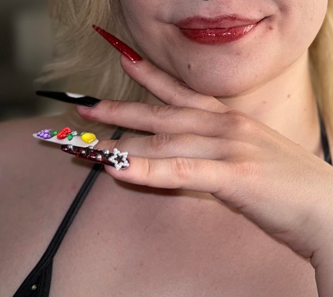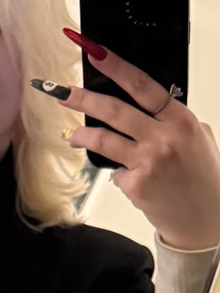 From Xmas 2024 when I stayed at the Paris hotel! Definitely the longest nails I’ve ever done myself, all designs were hand painted by me 🥰 I wish I had more pictures, the left thumb was the Queen card and my right thumb was the King