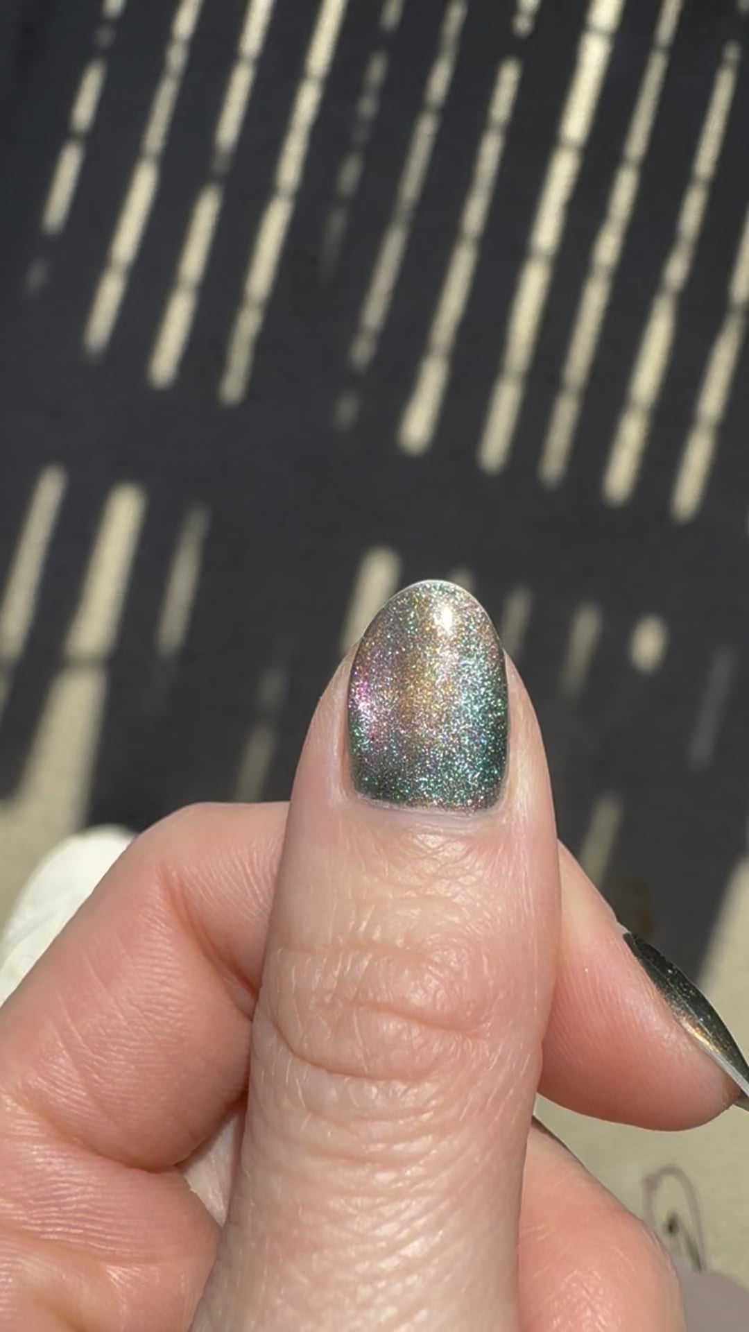 It’s giving bog witch? Oil spill in a swamp? This polish combo has been distracting me all week! I was foolishly trying to paint my nails outside in the sun, and my first coat of force of nature was extremely goopy and wouldn’t magnetize at all. I was convinced that I didn’t even like that color so I went back inside and topped it with a coat of too many beds and WOAH I’m so obsessed!!