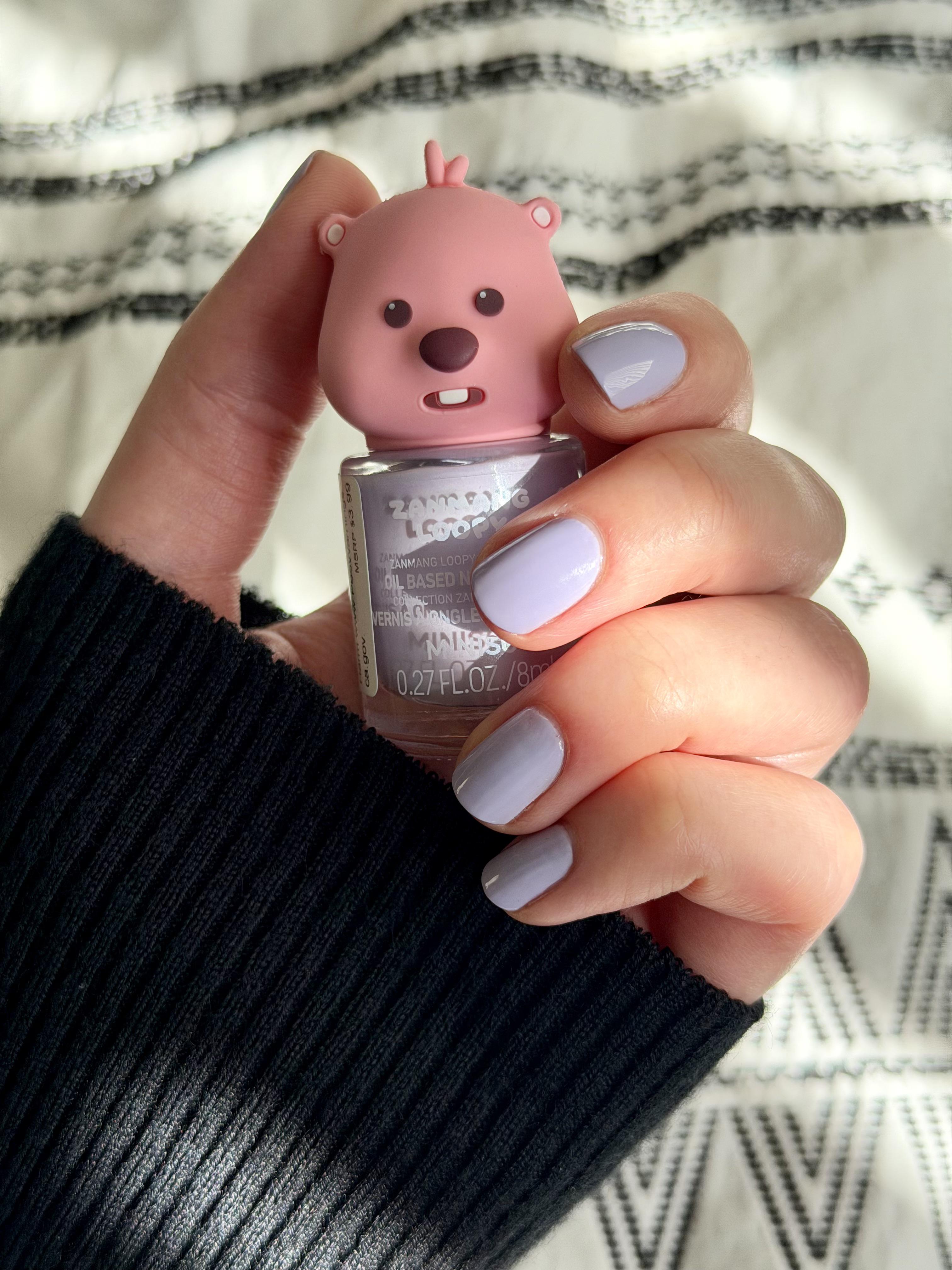 Base: China Glaze Strong Adhesion Color: Miniso “02” (I can’t find a name) Top: Cuticula Limitless Quick Dry Top Coat (grape blow pop scented) by glowinthevial