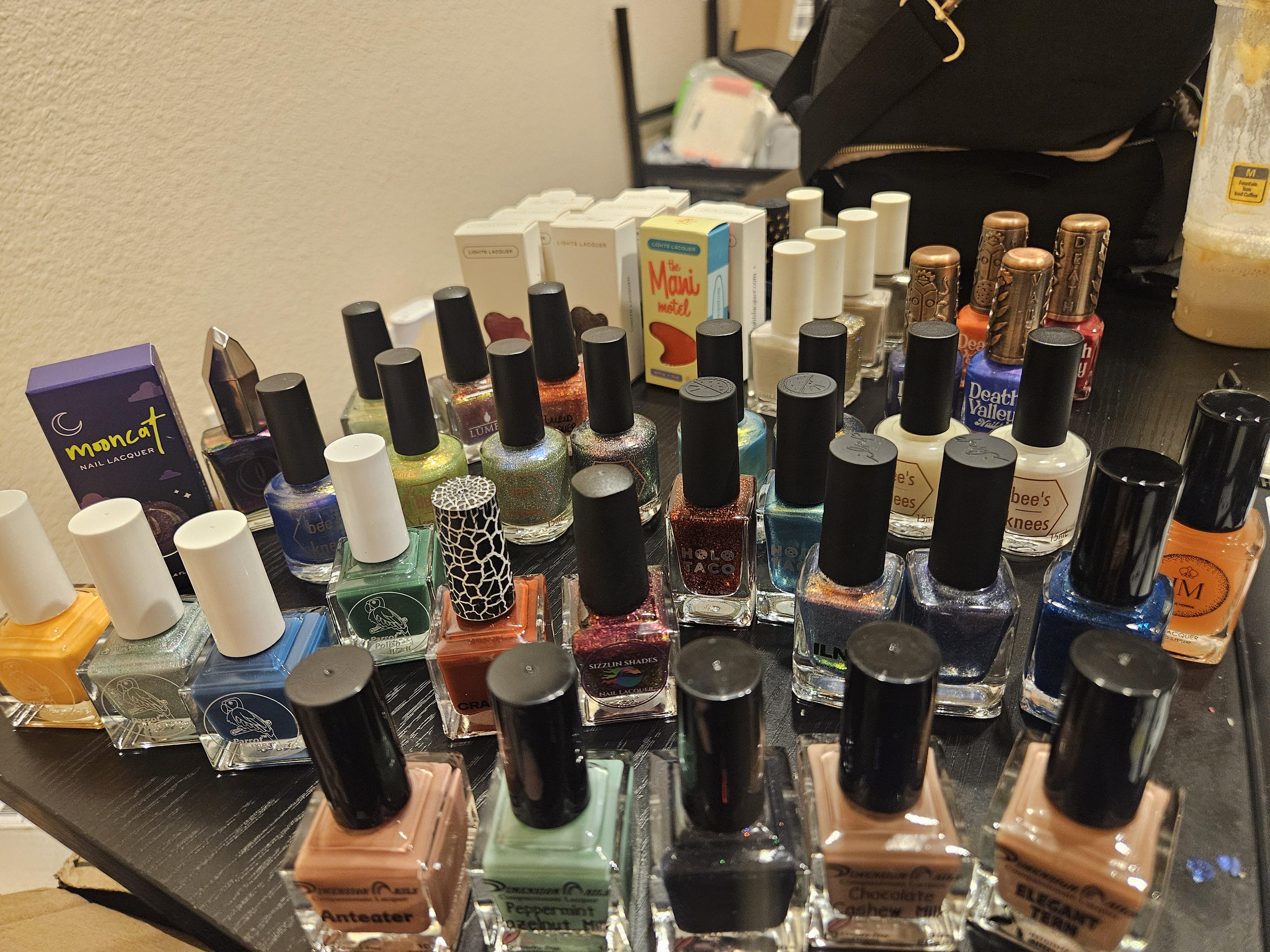 As a relatively new laquerista, I've begun trying to expand my collection through destashes instead of full price purchases in order to protect my poor wallet while helping others clear out some room for new treasures (or pay bills/emergency expenses/make space/earn money, etc., everyone has their own reasons and I support it 100%). This destash has my first Lurid and Lumen, a bunch of BKLs, a few Starrilys, ILNP, HT, some Mooncats, and a bunch of other new (to me) brands that I'm super excited to try ❤️ The seller was an absolute angel who included a bunch of wonderful extras and I'm so thankful to her. This community is truly incredible, and I couldn't be more grateful that I found you all.