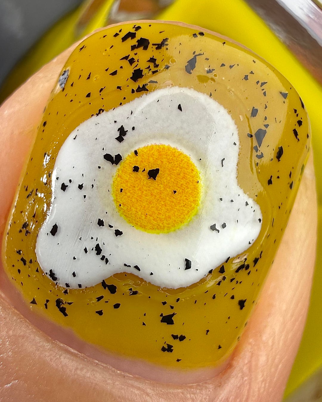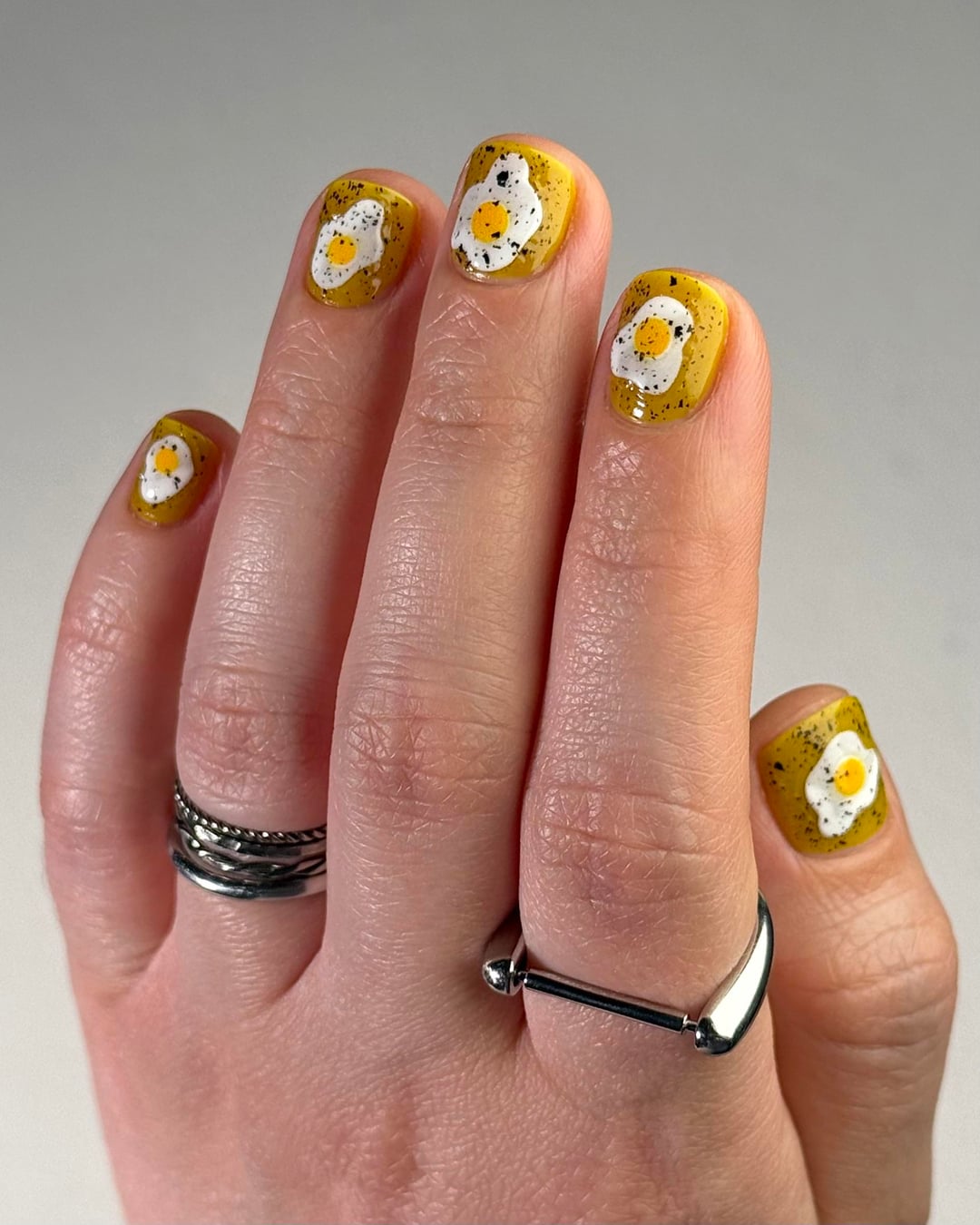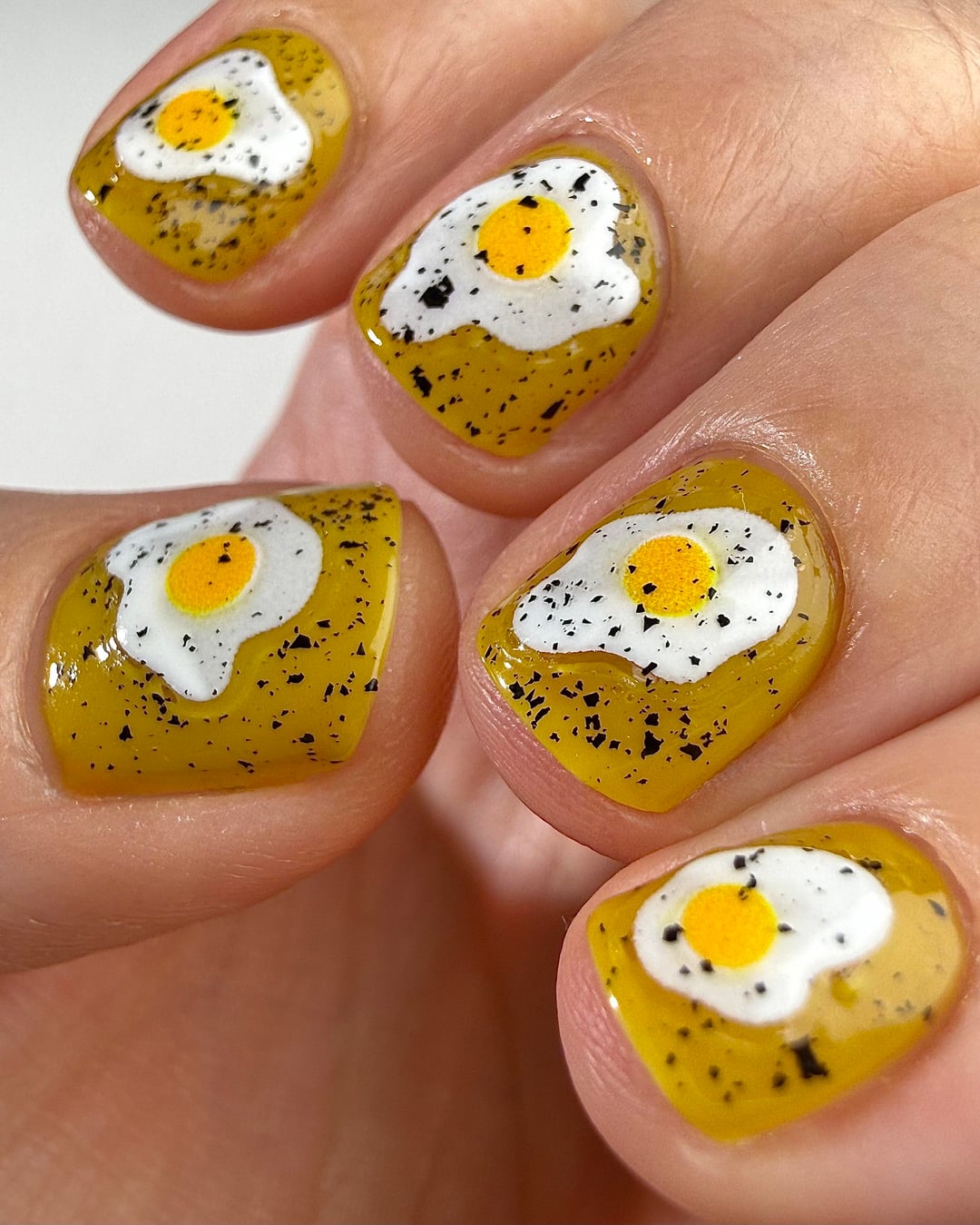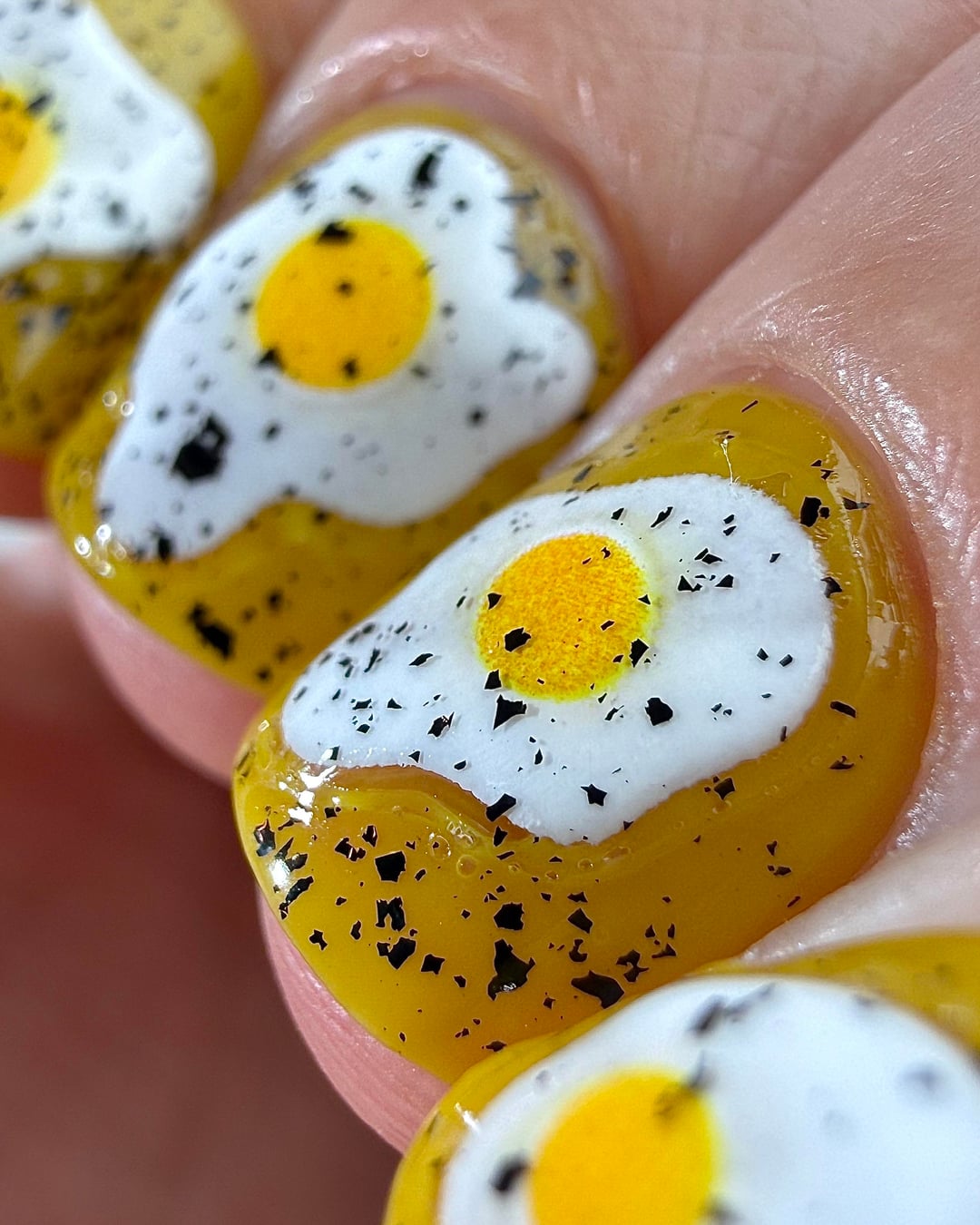 Cracked Polish – That’s All Yolks (three coats), topped with Mascara Flakes (one coat)