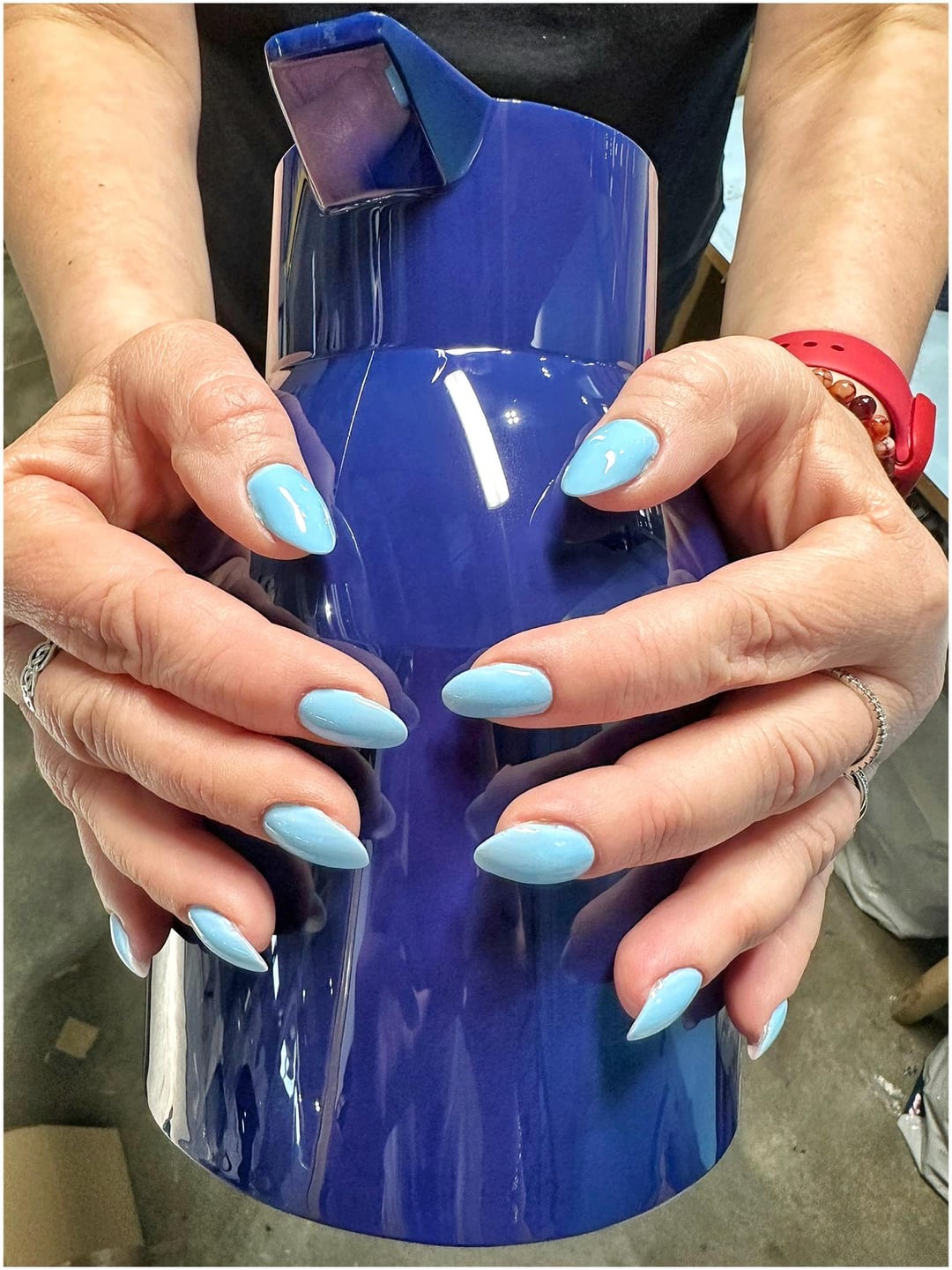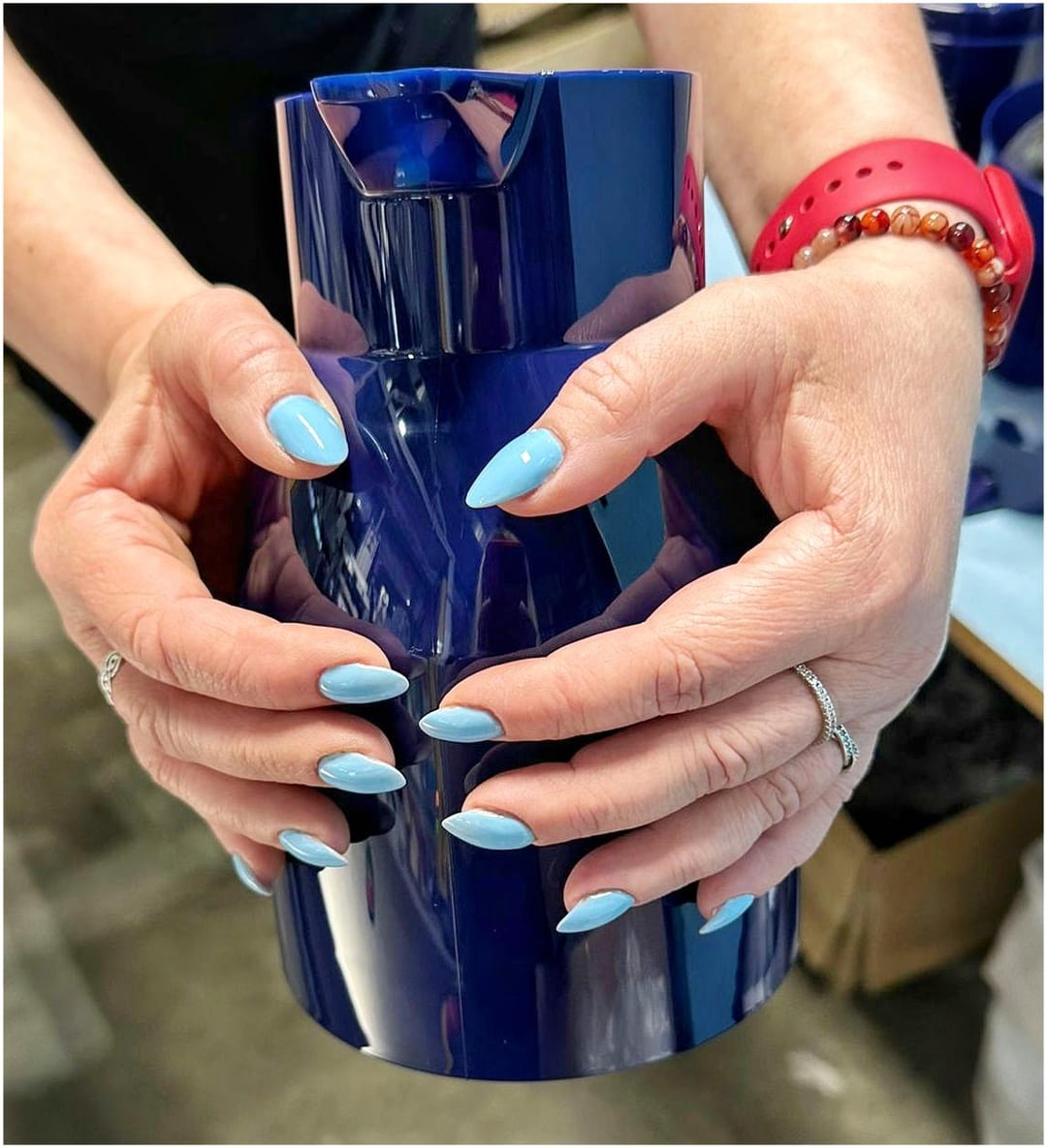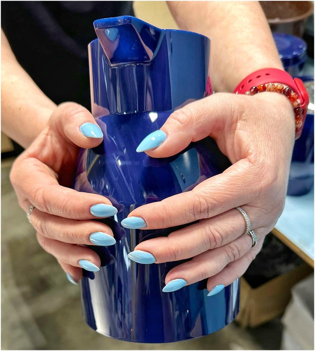 My new nails π and my first afternoon at work πͺ But they go well with the blue teapots I make ππ«π₯°