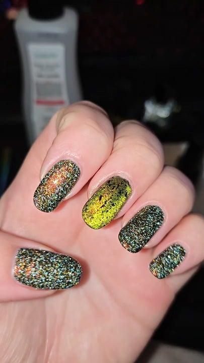 essie speed setter top coat kbshimmer hydrating base coat moth & moon I am fire, I am death middle finger ilnp radioactive with Tyler's trinkets there's a little witch in all of us topper by miss_whatsherface