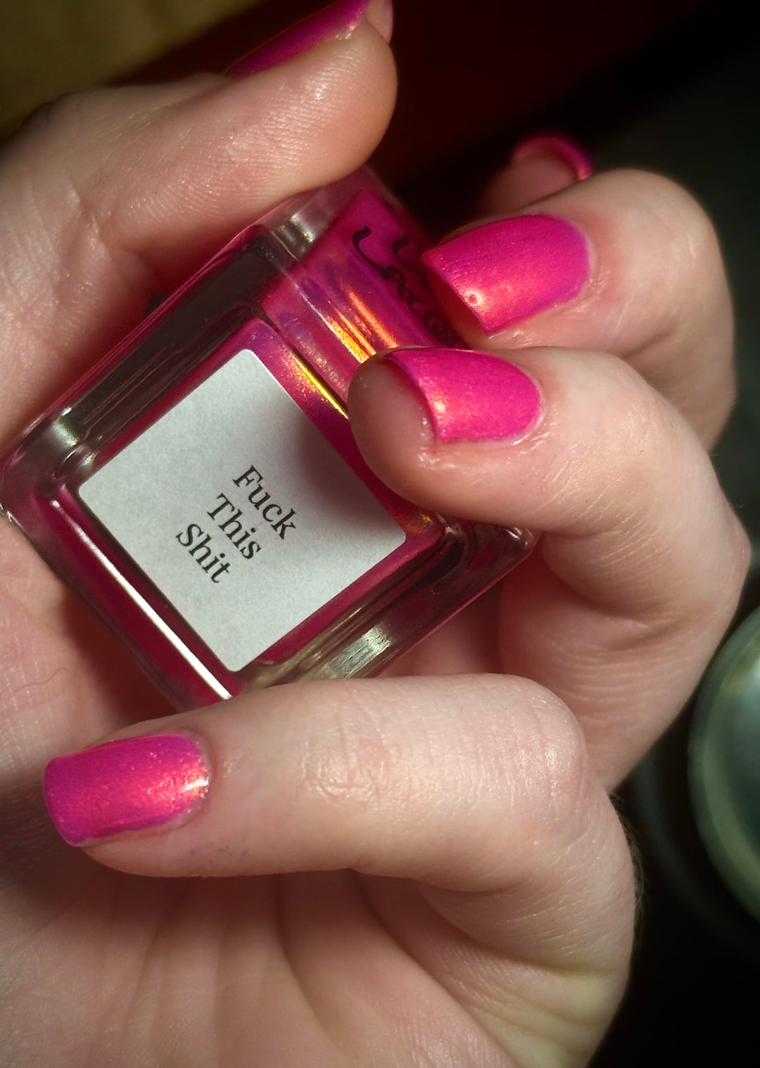 And the name is very appropriate to my feelings all the time everyday about the horrendousness 🥲 BC – Nailtiques 2, kbshimmer Fillin Groovy 3x Lurid Lacquer – Fuck This Shit TC – Sally Hansen Insta-Dri (red bottle) by birbtown