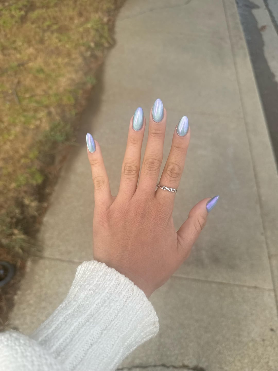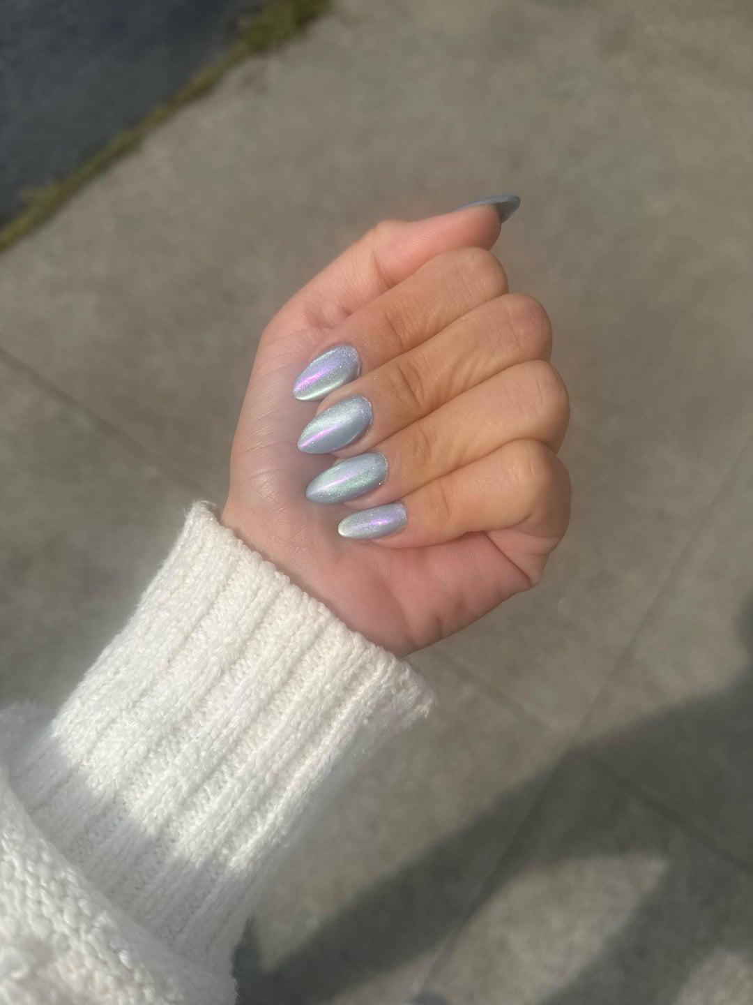 magnetic sparkle polish + silver magnetic polish + iridescent chrome. Builder gel in my natural nails (except my pointer finger which is an extension because we had a casualty😭)