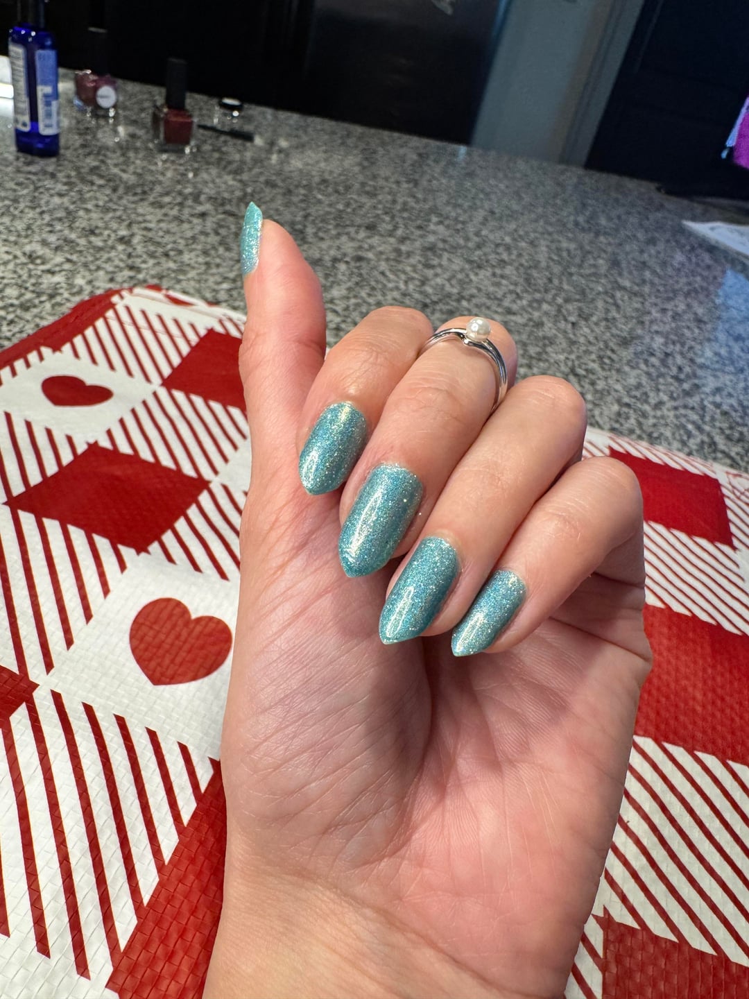 Finally found a color I love for spring! Wearing: Primer & base – mooncat Polish – “Sea Glass Stardust” – Zombie Claw Top coat – QDTC – Cracked by Heavy-Lengthiness186