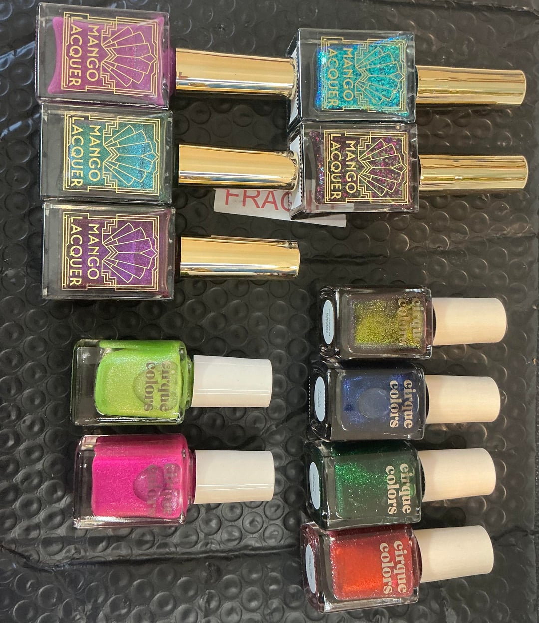 Decided to treat myself for my birthday and I picked up some cirque colors I have been wanting and Iām easily influenced and saw a swatch on a brand I had never heard of (mango lacquer) and decided to get some (I canāt help it I love magnetics and Flake polish) š