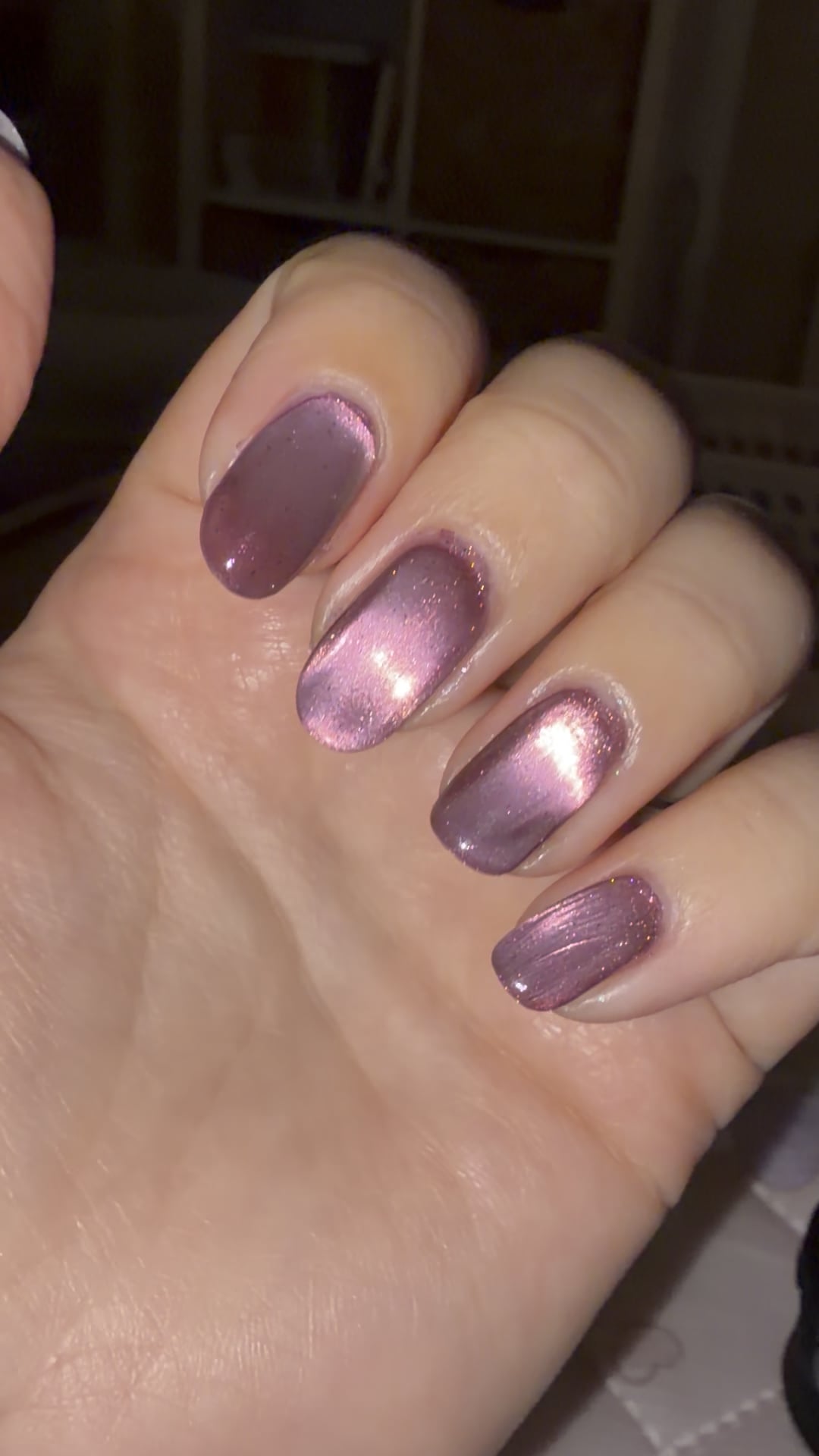 Polish is ILNP sugar plum, mooncat ridge filler base, essie gel couture top coat (tried sally hansen red bottle on pinky, came out streaky for me😭)