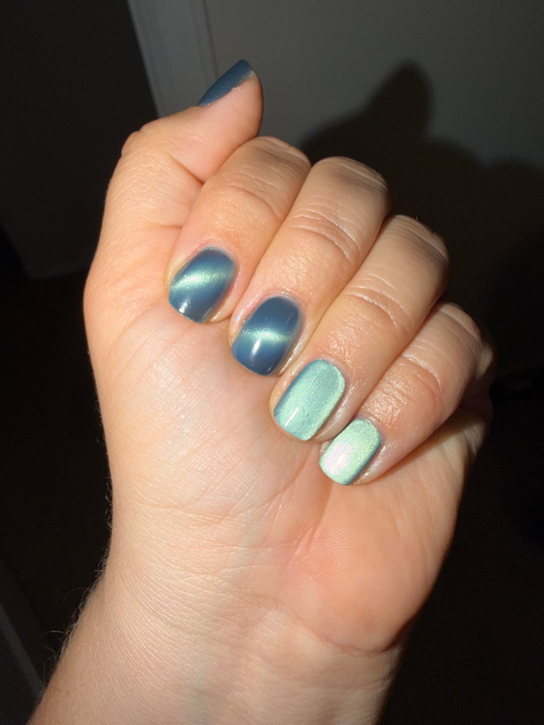 This one is a thermal + magnetic, so first photo is in its warm state & then second is a blurry picture of the cold state. This is my first BKL polish! There is definitely a learning curve with these fine particle magnetics, but man do they look good!!