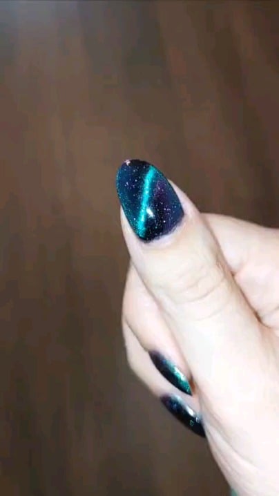 3 layers of Deep Space on each finger. The first unmagnetized, the next two magnetized. I also magnetized all top coats.