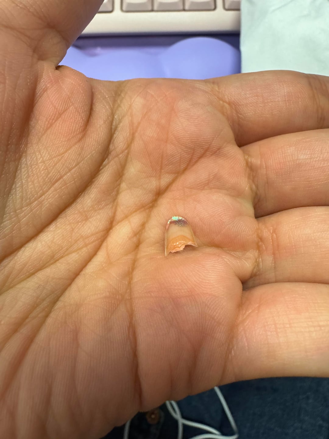Was trying to get to my phone in my back pocket and my pinky nail slammed into the arm rest of my desk chair. I let my nails grow out the longest I’ve ever had and this was my #1 fear as I’m a bit rough with my hands. I’m devastated to say the least. Rip pinky nail.