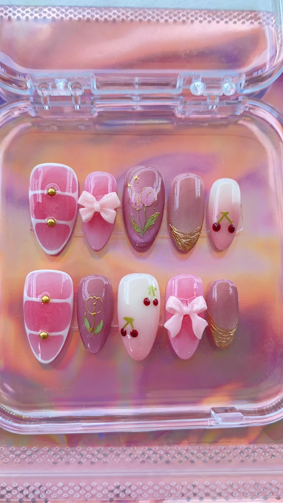 If you are mainly selling these in your local area, Check out other press on nails businesses in your country and you can get a feeling about how much you should ask for. The price can varies depending on the different countries, a same set of press on can cost 20usd in US but it actually cost like 5 usd in China.