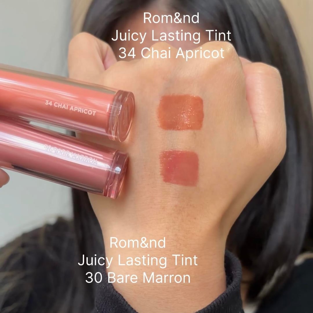 Hey y’all, today I compared Rom&nd Juicy Lasting Tints 34 Chai Apricot and 30 Bare Marron on my light medium warm skin tone