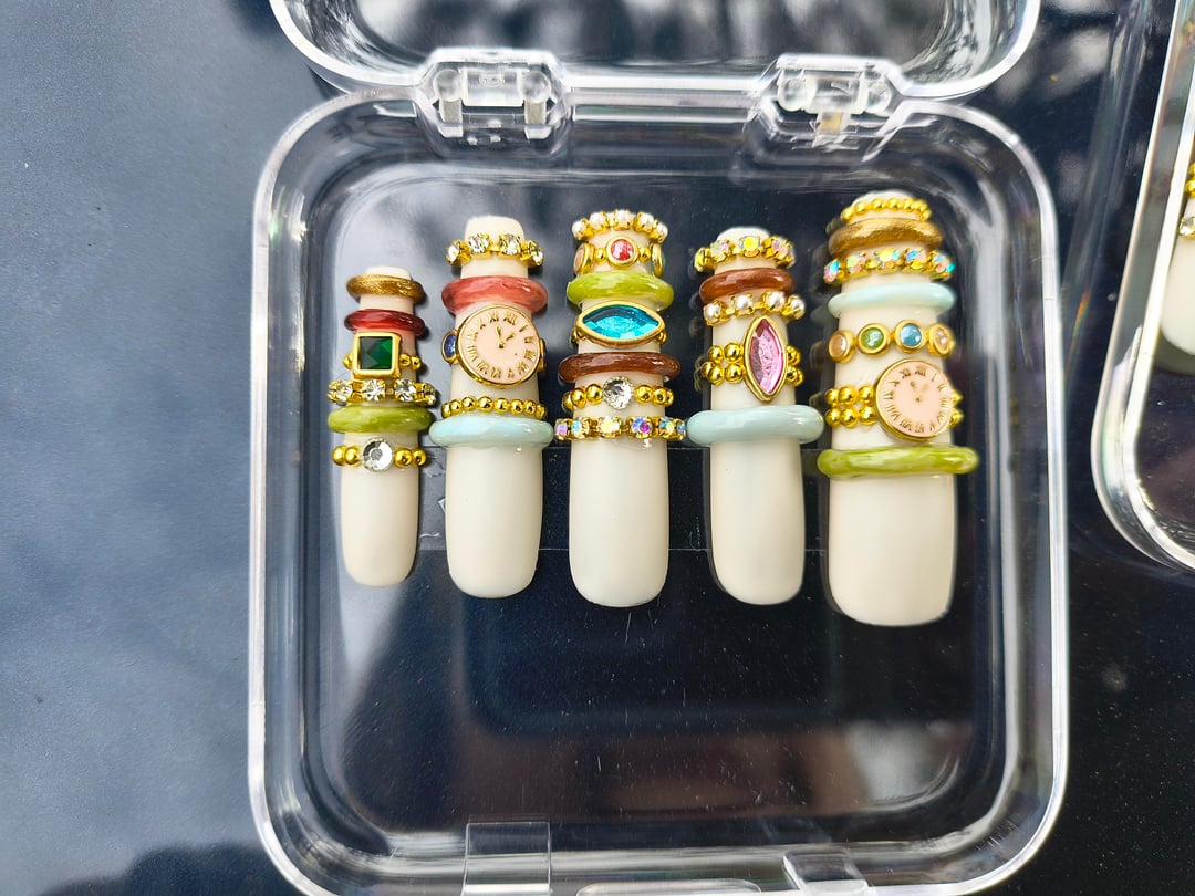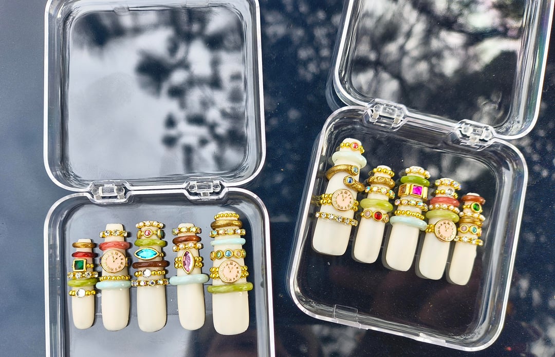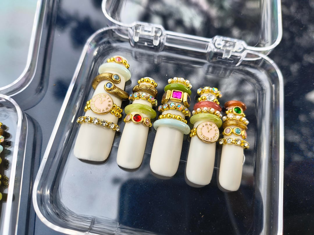 Nine and a half hours later…but I'm so so satisfied with the results! And they were so fun to make despite being tedious (I molded the 'jade' bracelets and painted them, and hand cut/placed everything else)! ​Despite the time they took I'd absolutely make them again. ​