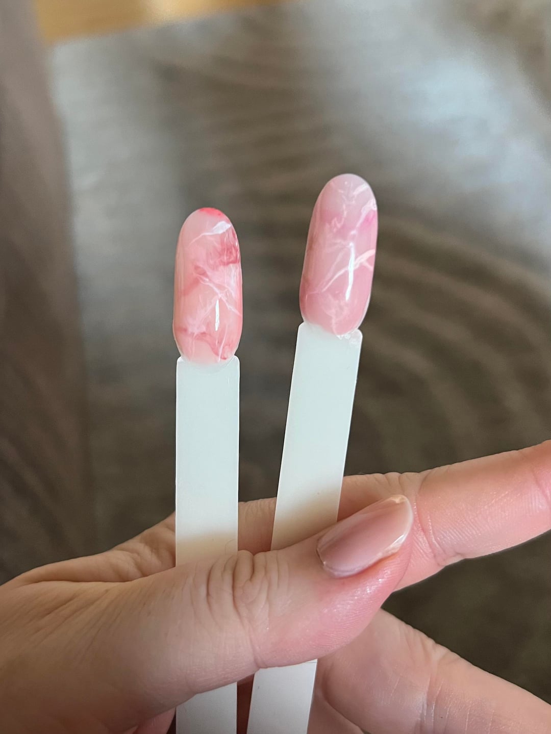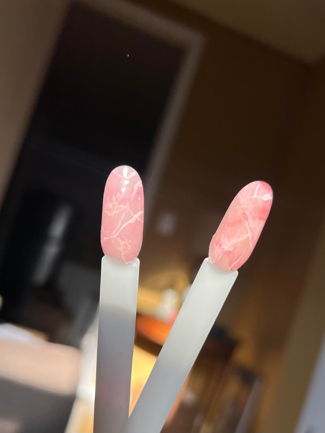 He wanted a rose quartz vibe, so I thought I’d test it out on some swatch sticks I have — I’ve also never really done any art (besides an ombré attempt)…which leads me to my question: I’m using regular polishes/lacquer, and I’ve read you can thin the polish out with acetone to help with painting designs, but when I tried it seemed to just make it disappear.