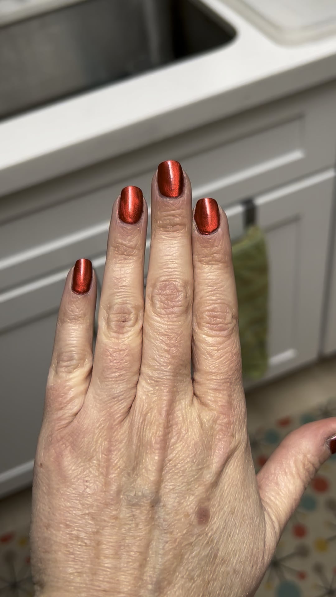 My goth heart loves this. ❤️🧛♀️ Sally Hansen double duty basecoat Holo Taco Sacrificial Lacquer x2 Sally Hansen Insta Dri (red bottle) Magnetized with 30lb horseshoe on top of 5D spinner. by Hoojibb