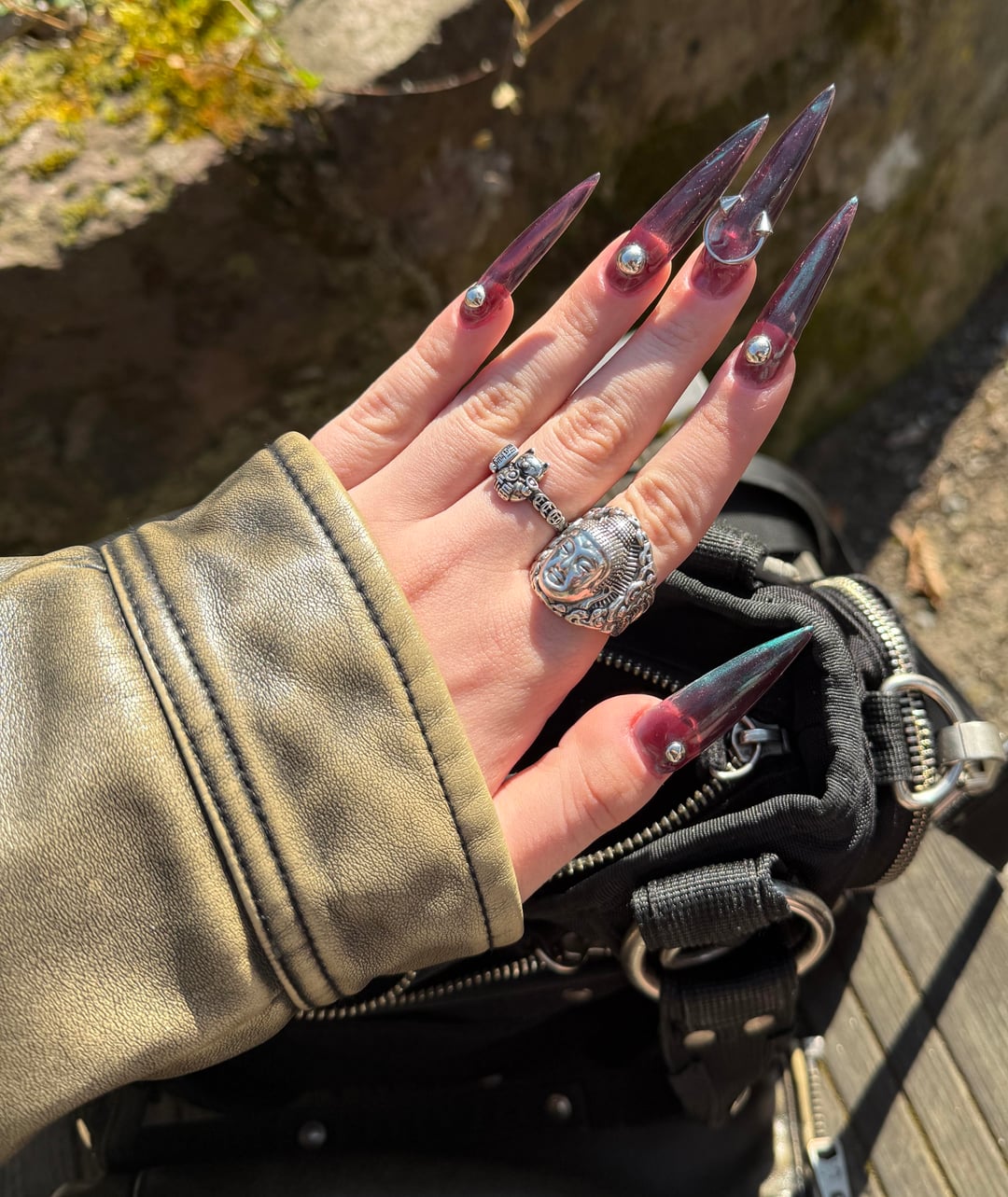2 days ago was my birthday and I celebrated it by making some new nails for myself :3 decided to make them with less dark and gothic vibes cause it's spring!! <3 (but still had to keep at least some of it xDD)