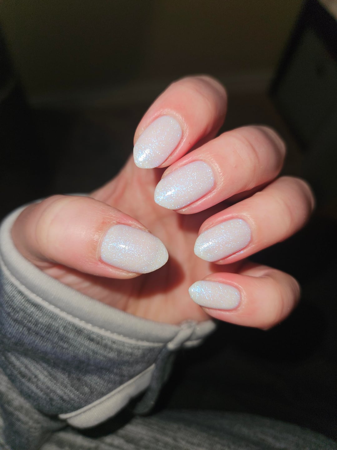 I am almost obsessed with this polish. it glows blue in the dark, and has a nice blue shimmer with a fairly neutral off white base. But I am extra 😇 and I want more of a "wow" effect in regular lighting, without interfering with the glow in the dark effect! I was thinking a super glowy shimmer top coat with a clear base, like a pink or a purple would be so pretty. I have tried my only flaky topper over it (ILNP Imagine That) but I do not like it because it is not very noticeable over this polish. any and all ideas are welcome 😁 thank you!