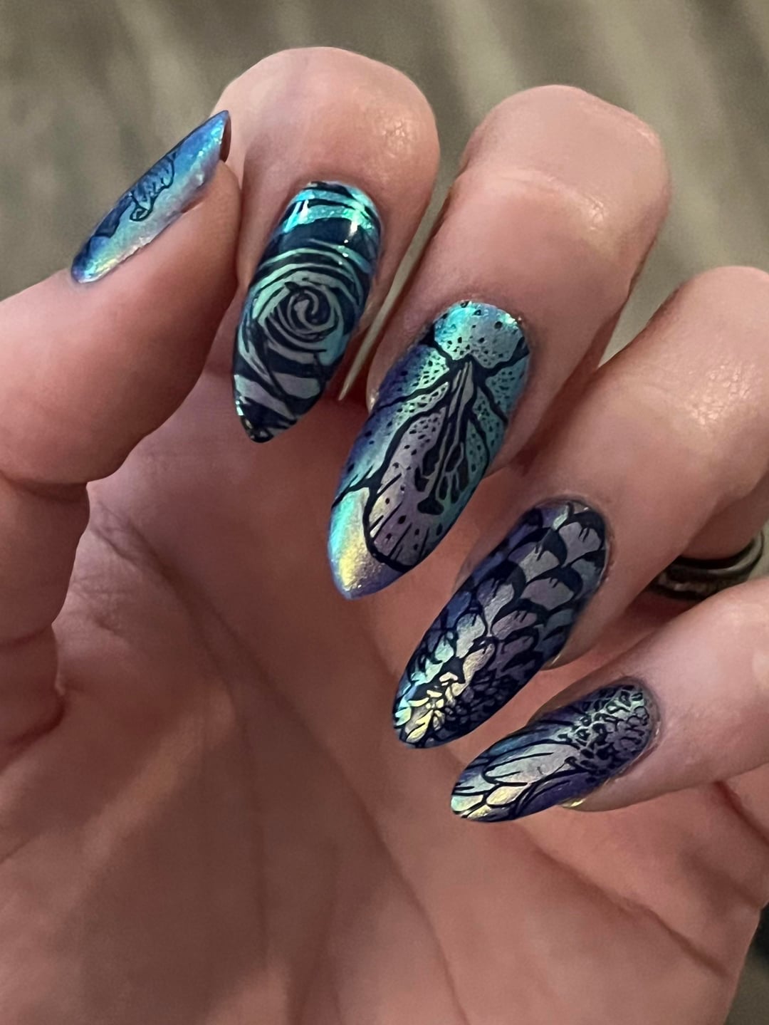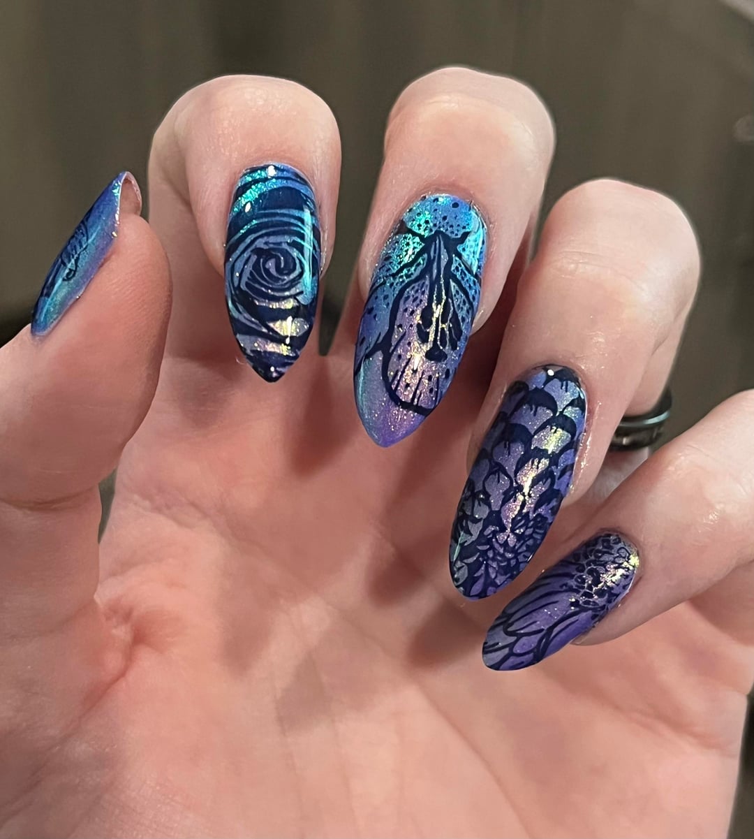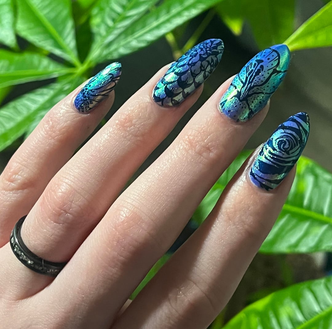 Oh your stamping looks amazing here! I have mixed luck with single color stamps unless I use a matte topper but your detail is showing really well! (also on team mixed LynB results but your six coats look great lol)