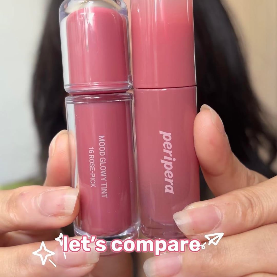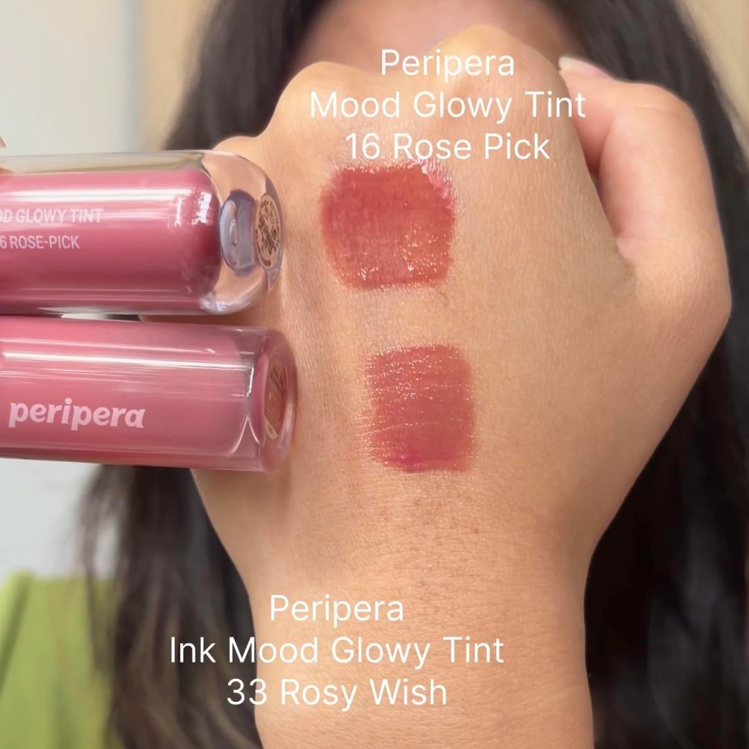 Hey y’all, today I compared Peripera Mood Glowy Tint 16 Rose Pick vs Ink Mood Glowy Tint 33 Rosy Wish on my light medium warm skin tone.