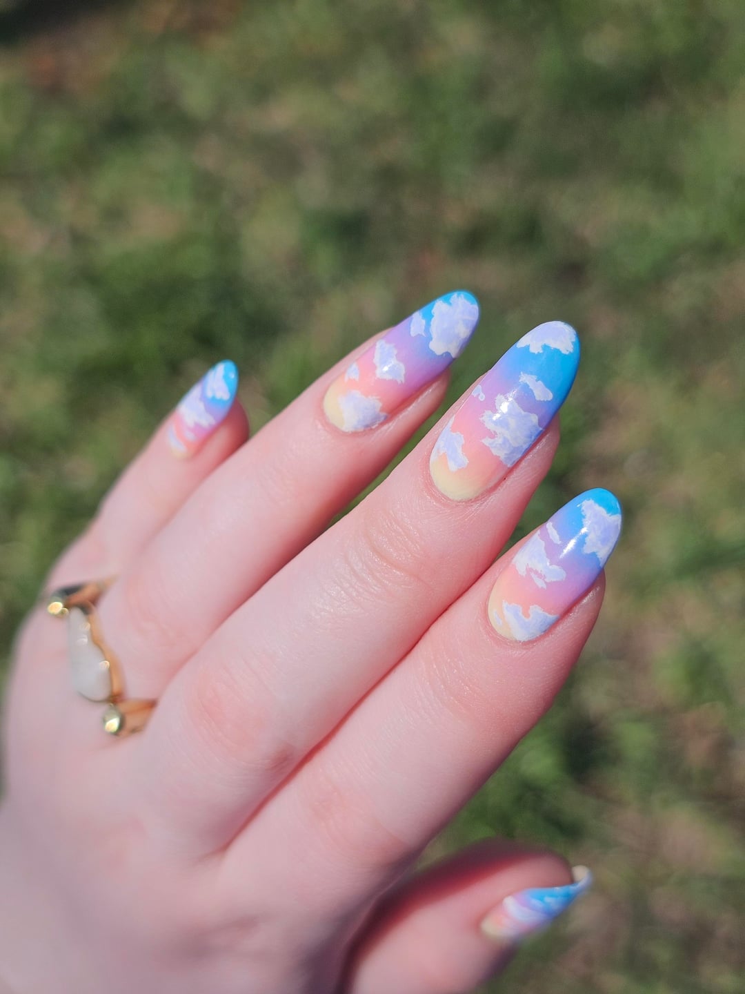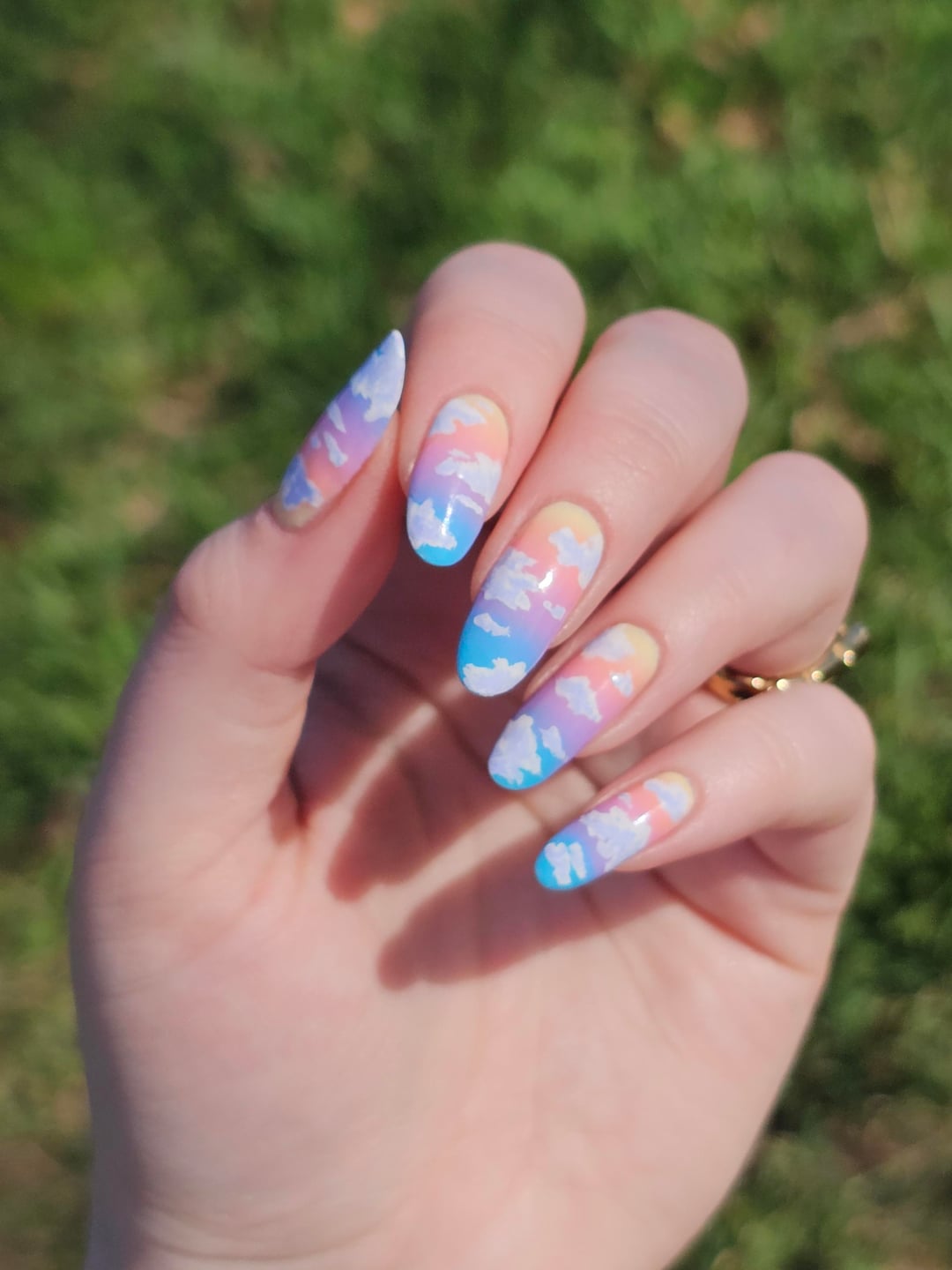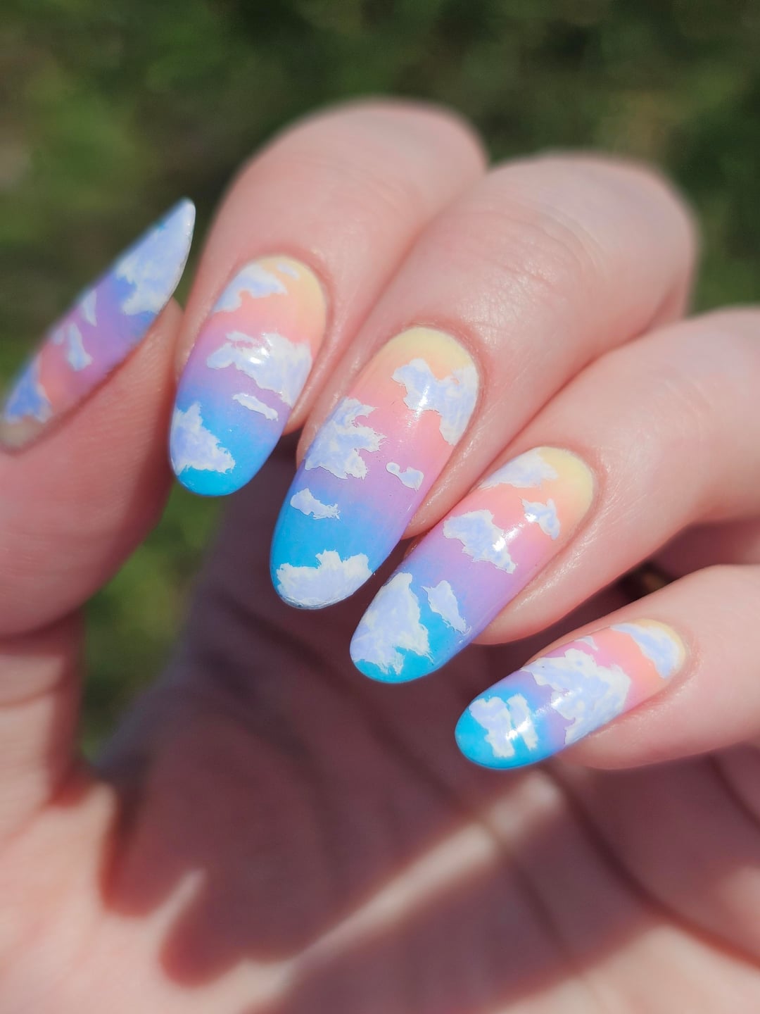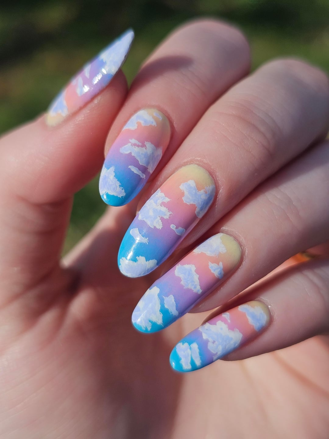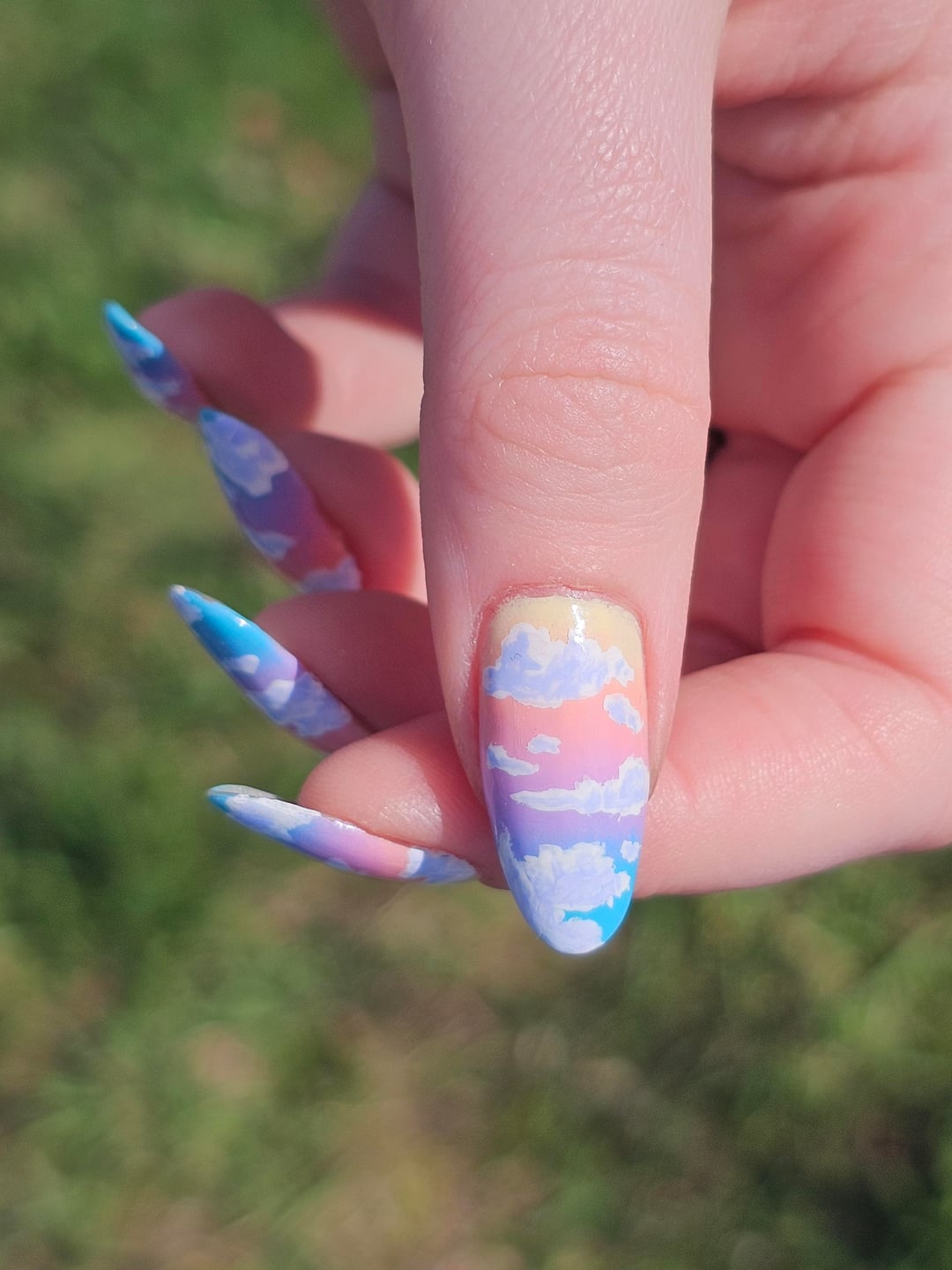 Did top coat of BKL QDTC, painted the clouds with acrylic paint, then did another layer of topcoat.
